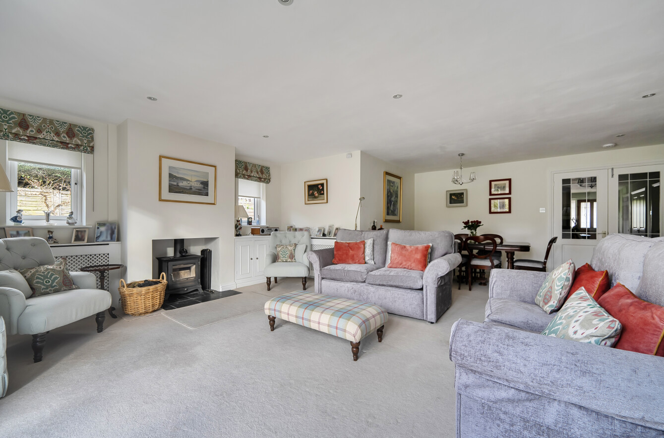 Your principle reception space is all at the rear of the property benefitting from views over the garden. The sitting room is dual aspect, and incredibly spacious with room for both lounge and dining areas. A wood burning stove is centrally positioned and patio doors open directly onto the garden.