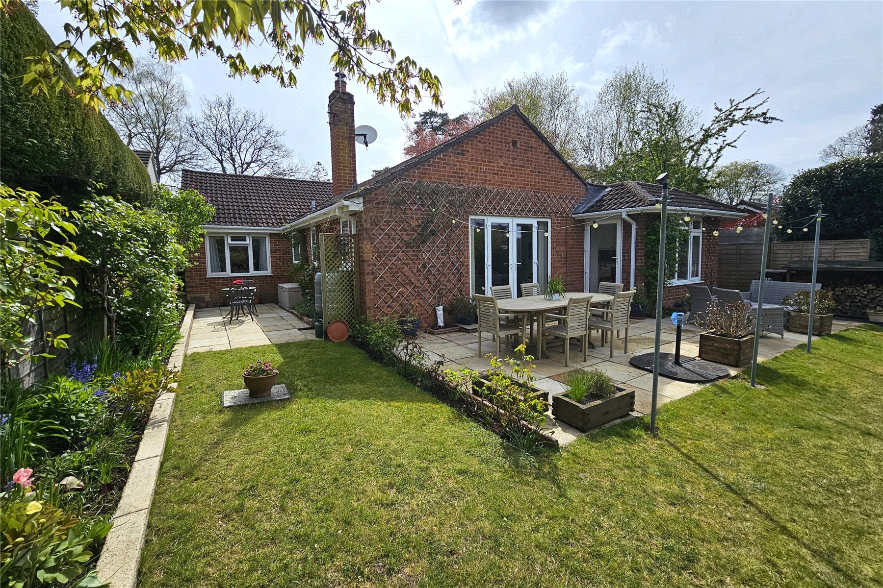 Spacious 3/4 bedroom detached bungalow within level generous gardens on a quiet private road within walking distance of Ludshott Common.
