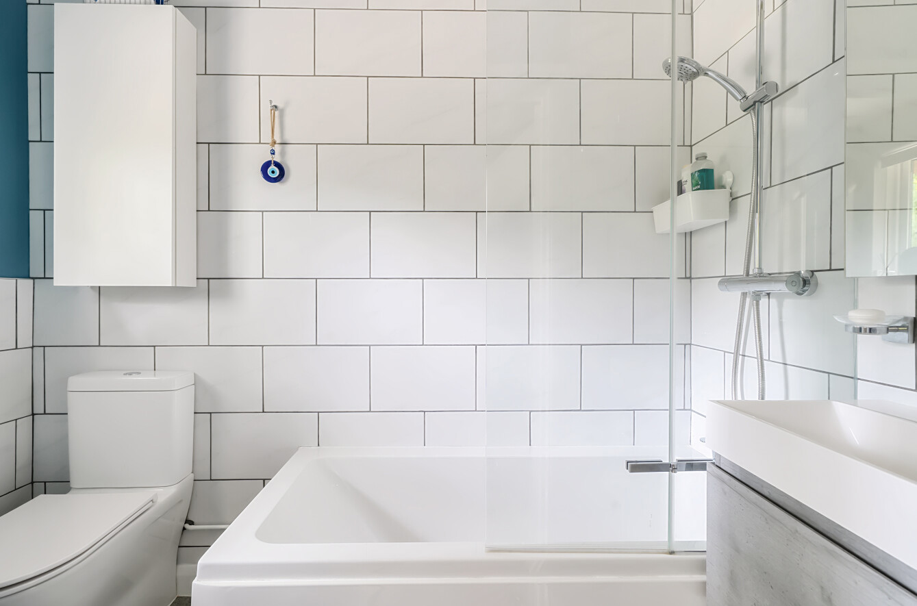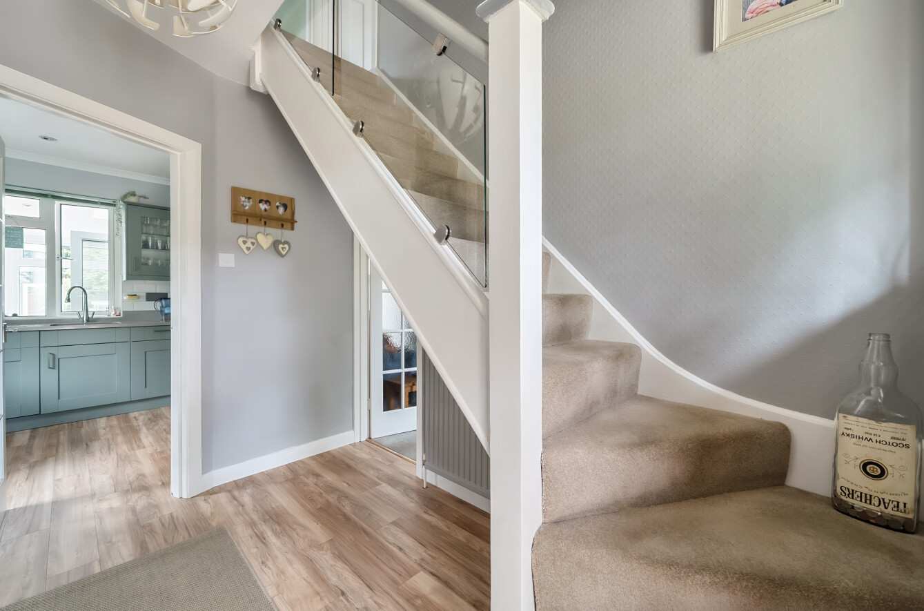 The front door opens into a hallway with access to a ground floor bathroom that was refitted in the last few years with shower over the bath.