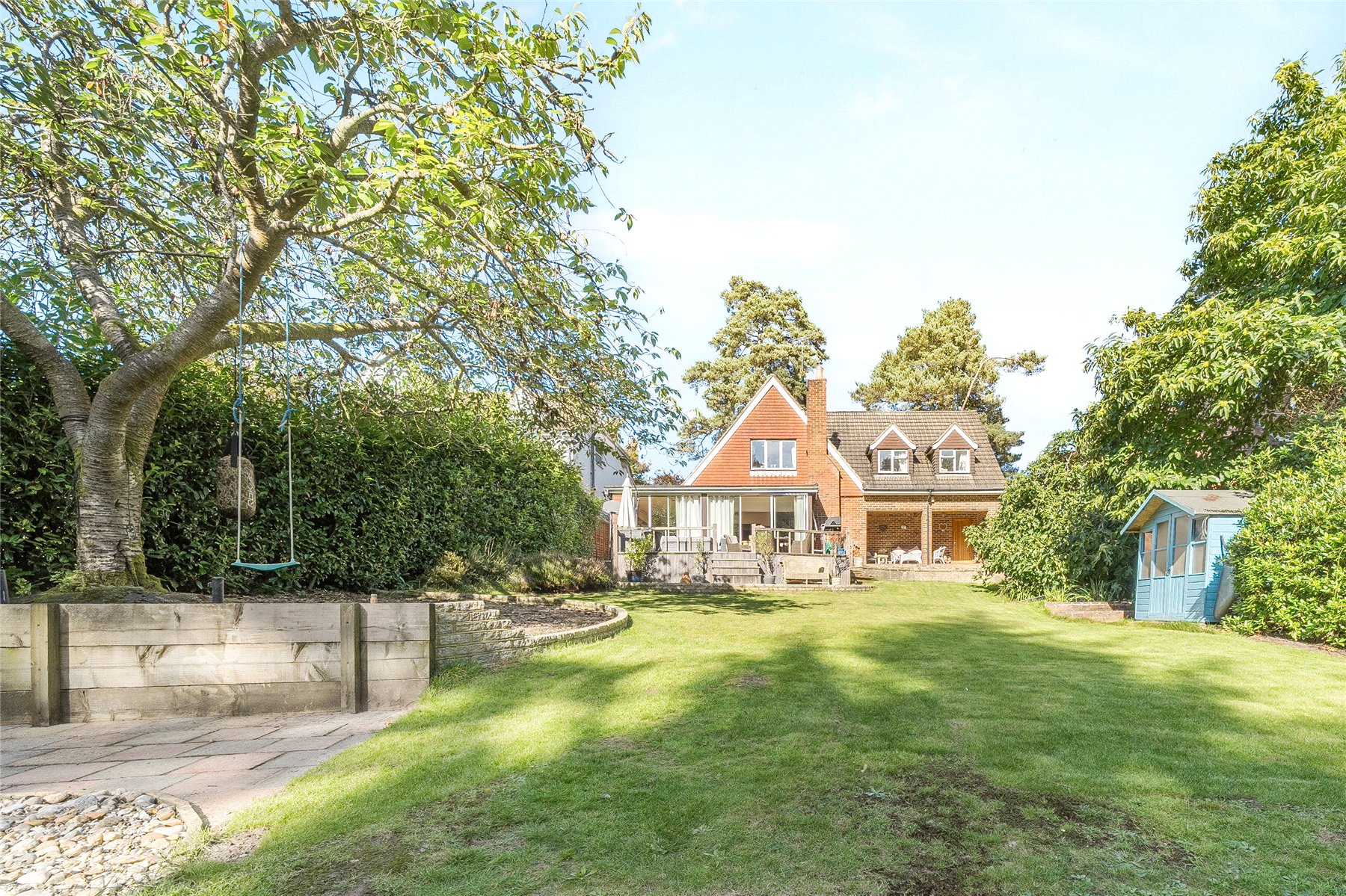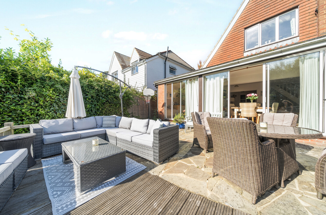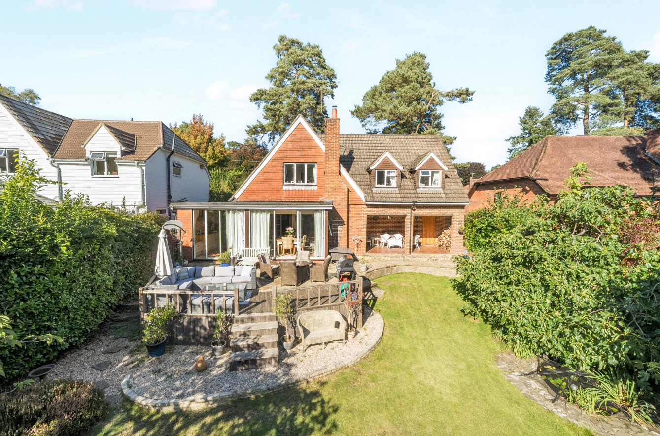 This detached four bedroom family home offers flexible and versatile accommodation, with sunny south facing gardens within grounds of approx 1/3rd of an acre, enjoying views onto National Trust land at Lushott Common.