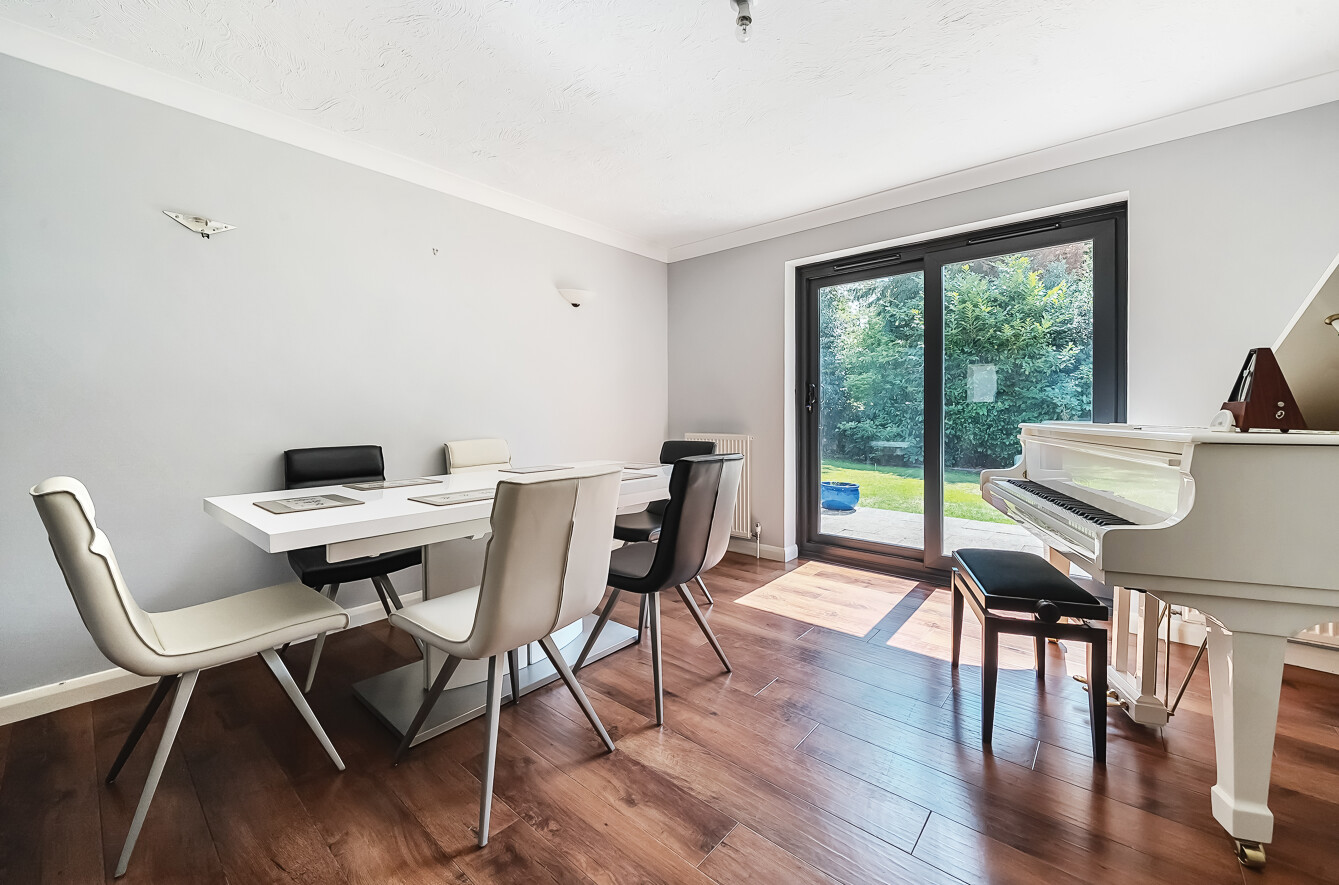 A large dining room with sliding patio doors is a wonderful space for socialising, hosting dinner parties or a Sunday family roast dinner.