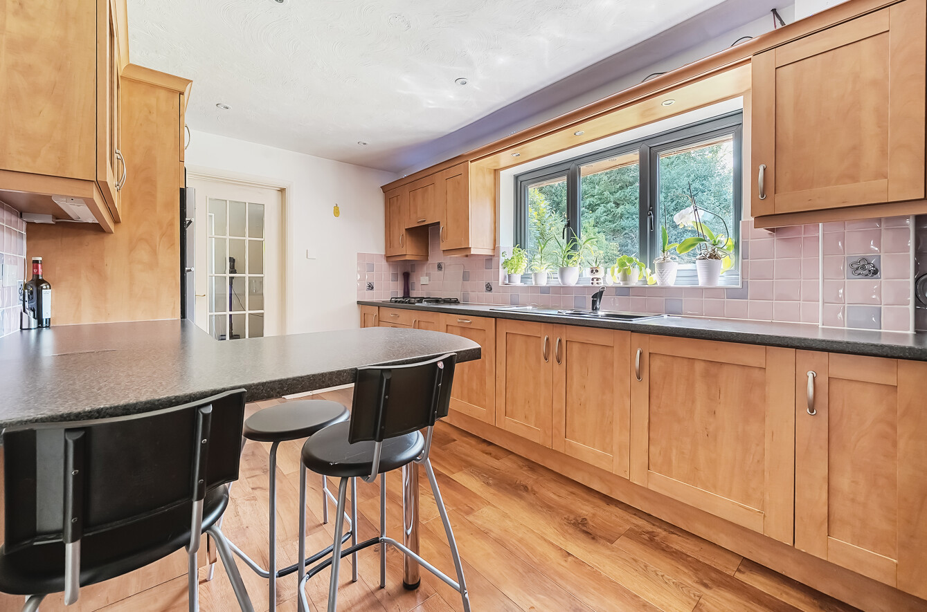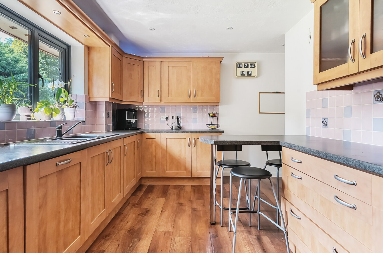 Westfield is set in a quiet residential gravel drive with only four other properties. The paved private driveway can accommodate upto four cars. Via side access on either side of the property, the south facing garden is an impressive size due to the width of the plot. An array of very mature hedges and shrubs, including Laurels and Rhododendrons, create ideal privacy from any surrounding houses.