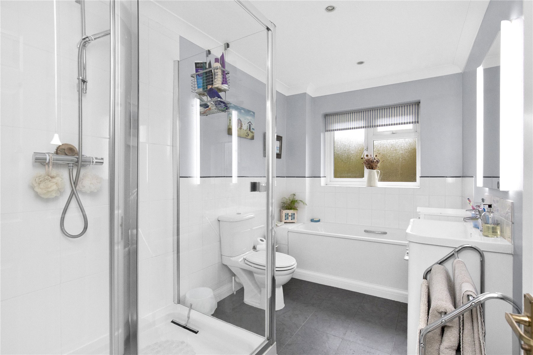 Moving to the first floor there is a traditional four bedroom set up. A large double aspect master bedroom benefits from built in wardrobes and an en suite bathroom, while the three remaining bedrooms are all doubles with built in wardrobes with the two overlooking the rear garden enjoying a dual aspect. Completing the accommodation is a modern family bathroom, with both bath and separate shower unit, refitted about 3 years ago.