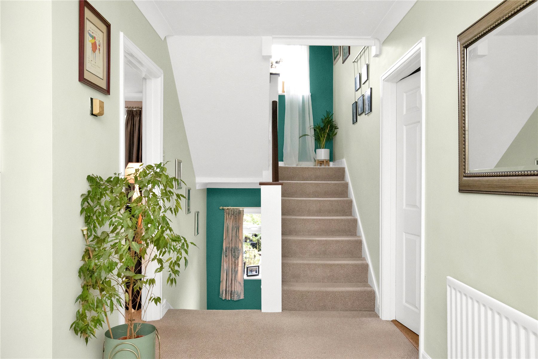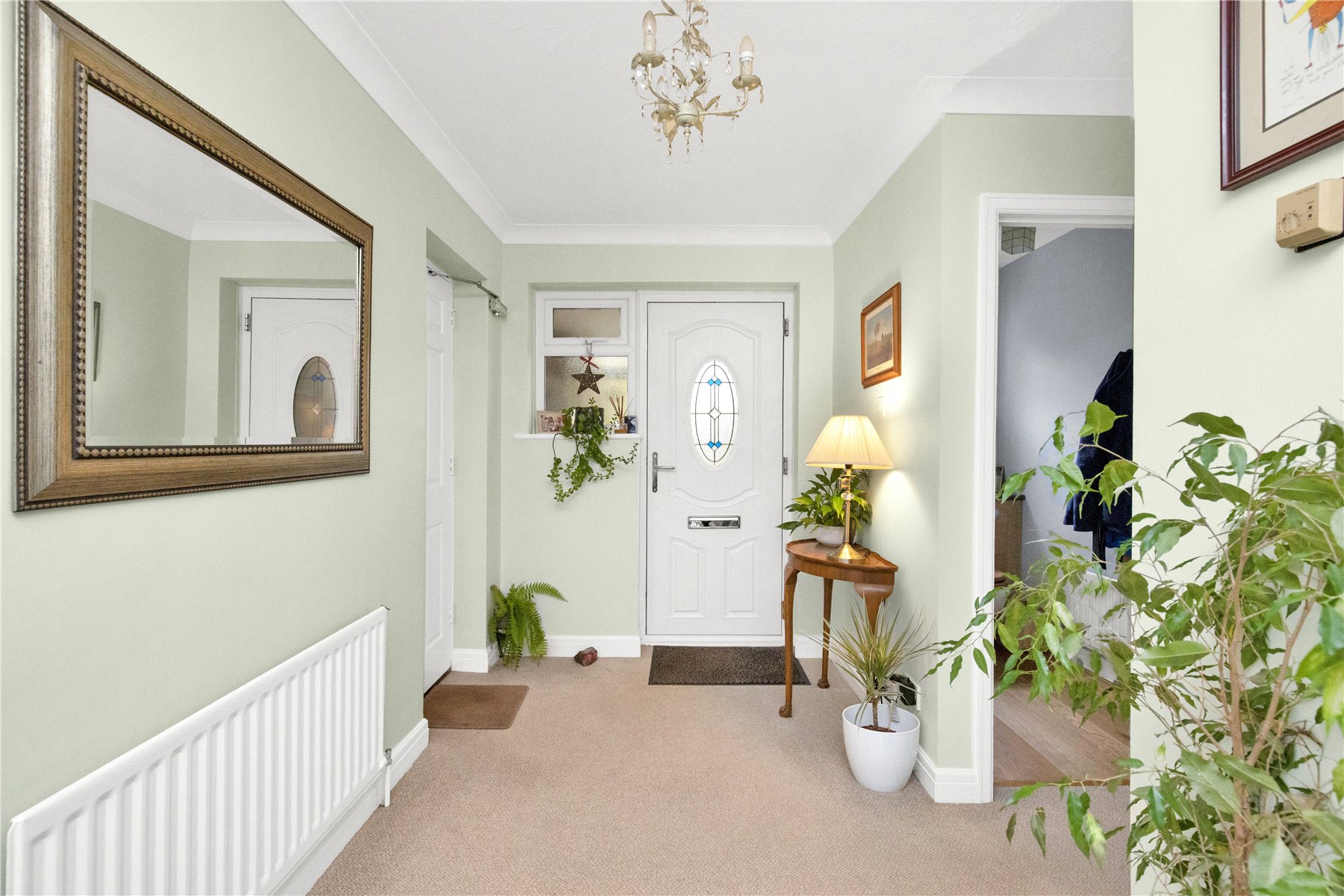 Within the front garden is driveway parking for several cars, leading to integral garage offering parking/storage and to a deep enclosed entrance porch. The front door then opens into a spacious and welcoming entrance hall with the all importance cloakroom and stairs to both lower and upper levels at the far end.