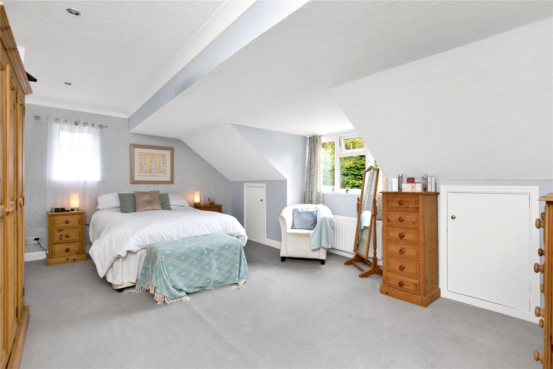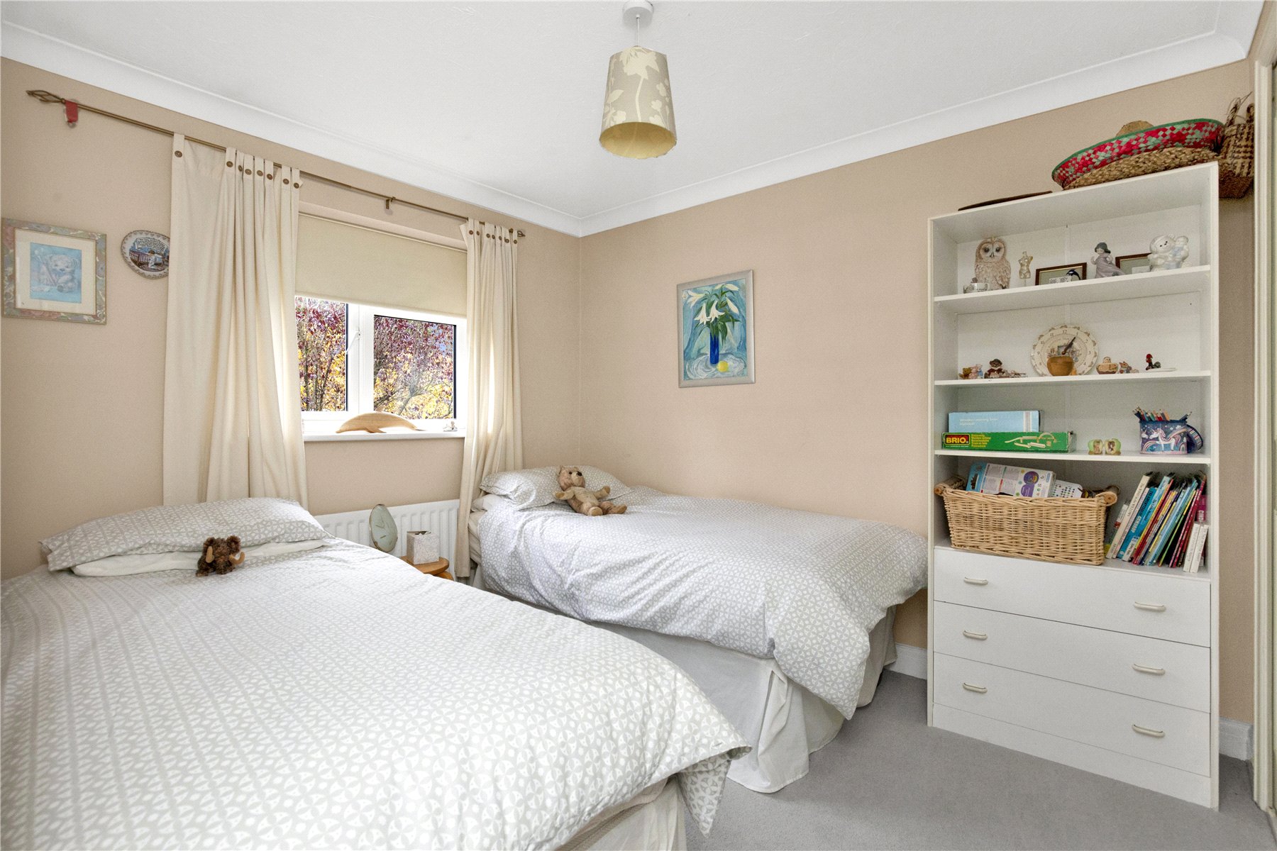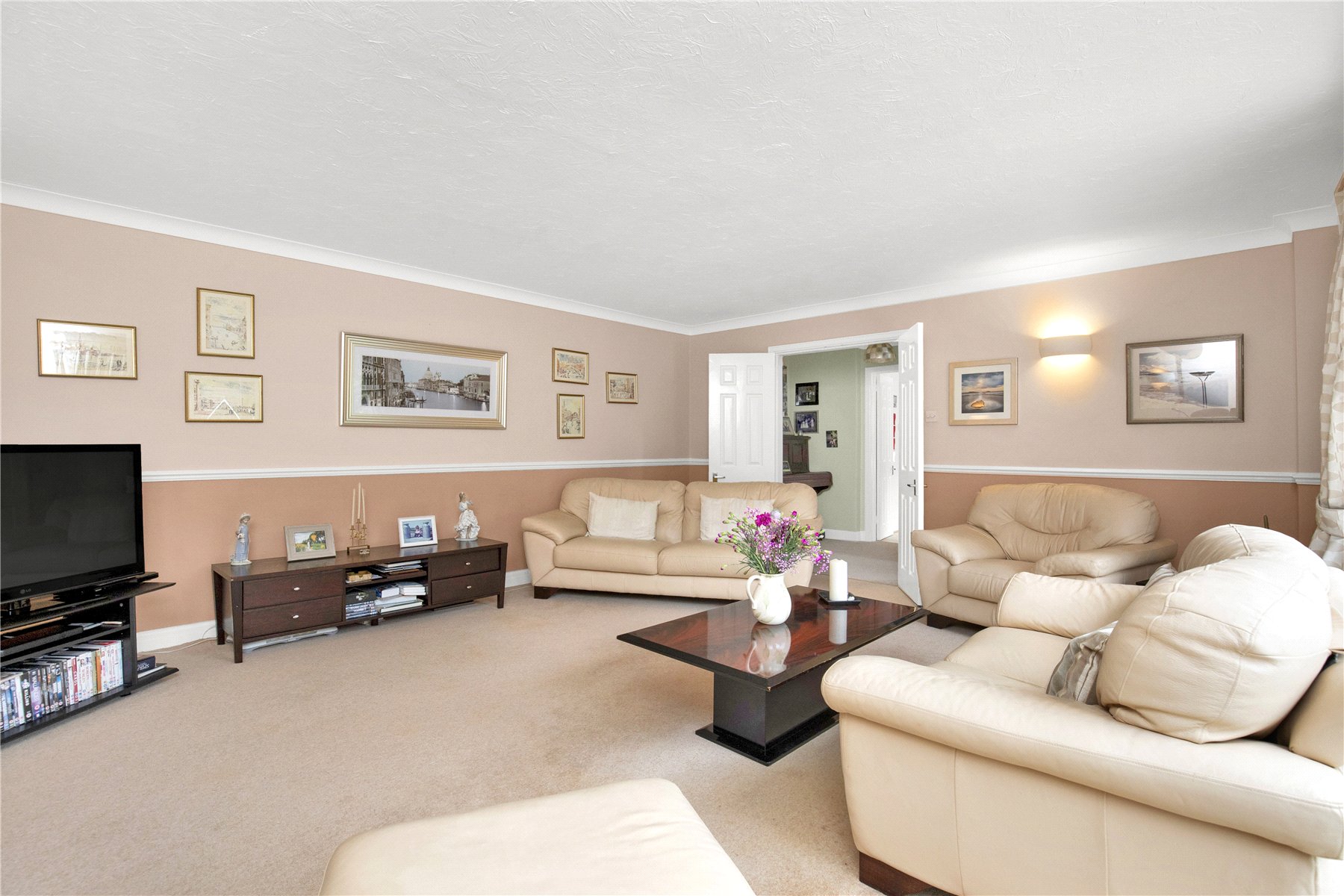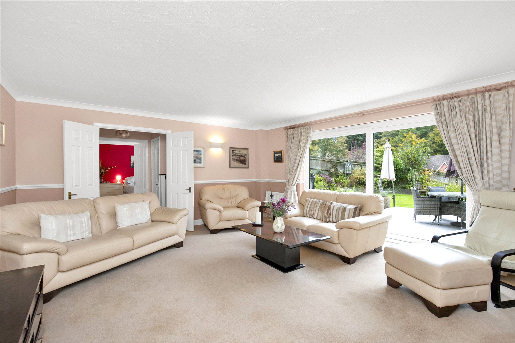 Moving to the lower floor there are two great sized rooms. These offer exceptional versatility, with double doors opening from the hallway into both. Currently housing the formal sitting room with a feature fireplace to one end (gas log burner in situ) and with patio doors opening onto a superb paved terrace and the garden beyond. The 2nd room also benefits from patio doors onto the garden. Currently arranged as a double bedroom it has also been used by the owners as a study and playroom.