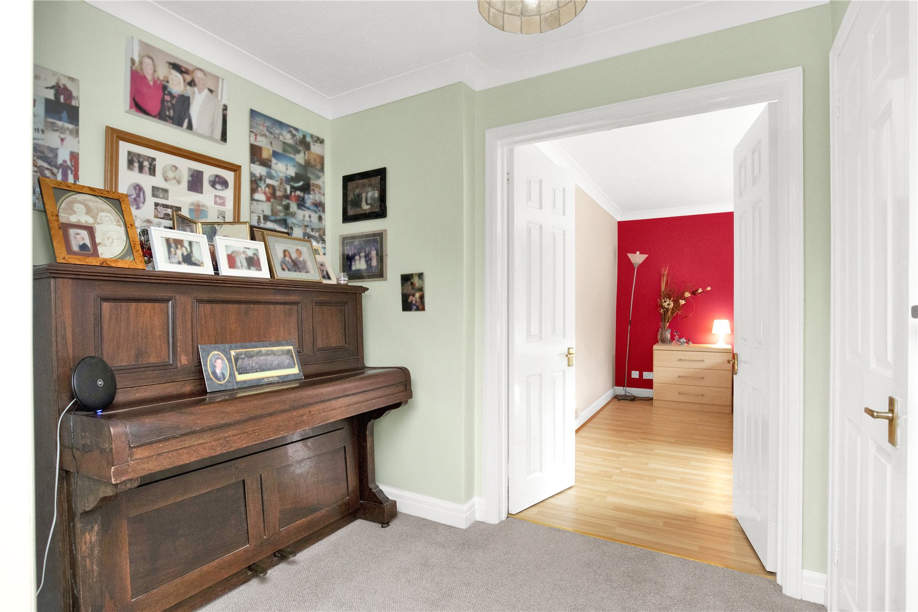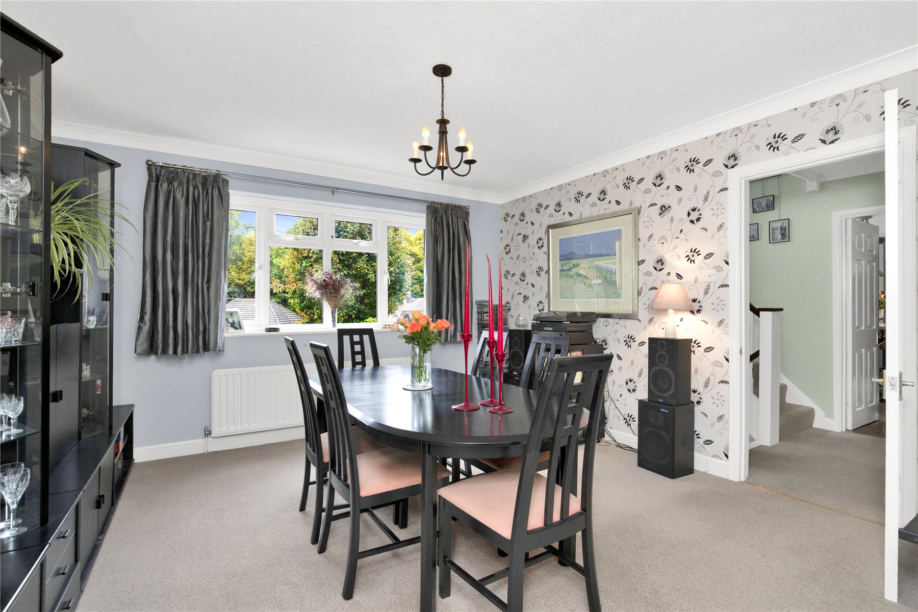 To the left of the hall are two reception rooms; currently arranged as a study to the front and a double aspect dining room to the rear.