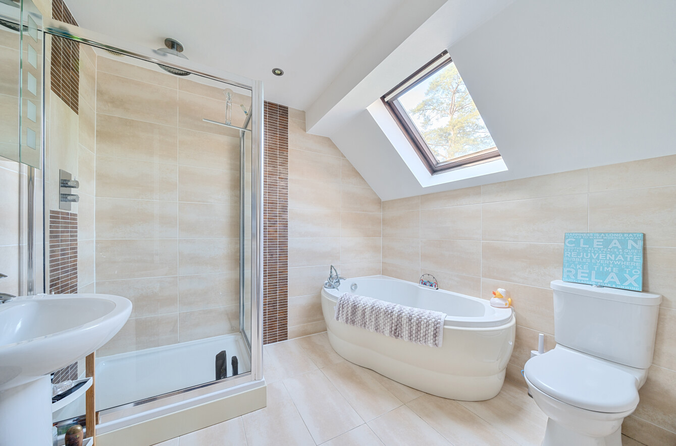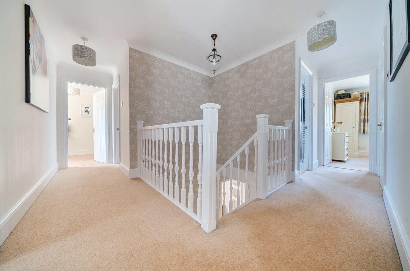 Moving to the 1st floor there are five generous bedrooms and a family bath/shower room with a Velux window that allows sun to flood in. The master benefits from an en suite shower room, while beds 2,3 and 4 are all double and bedroom 5 is a generous single currently used as a study.