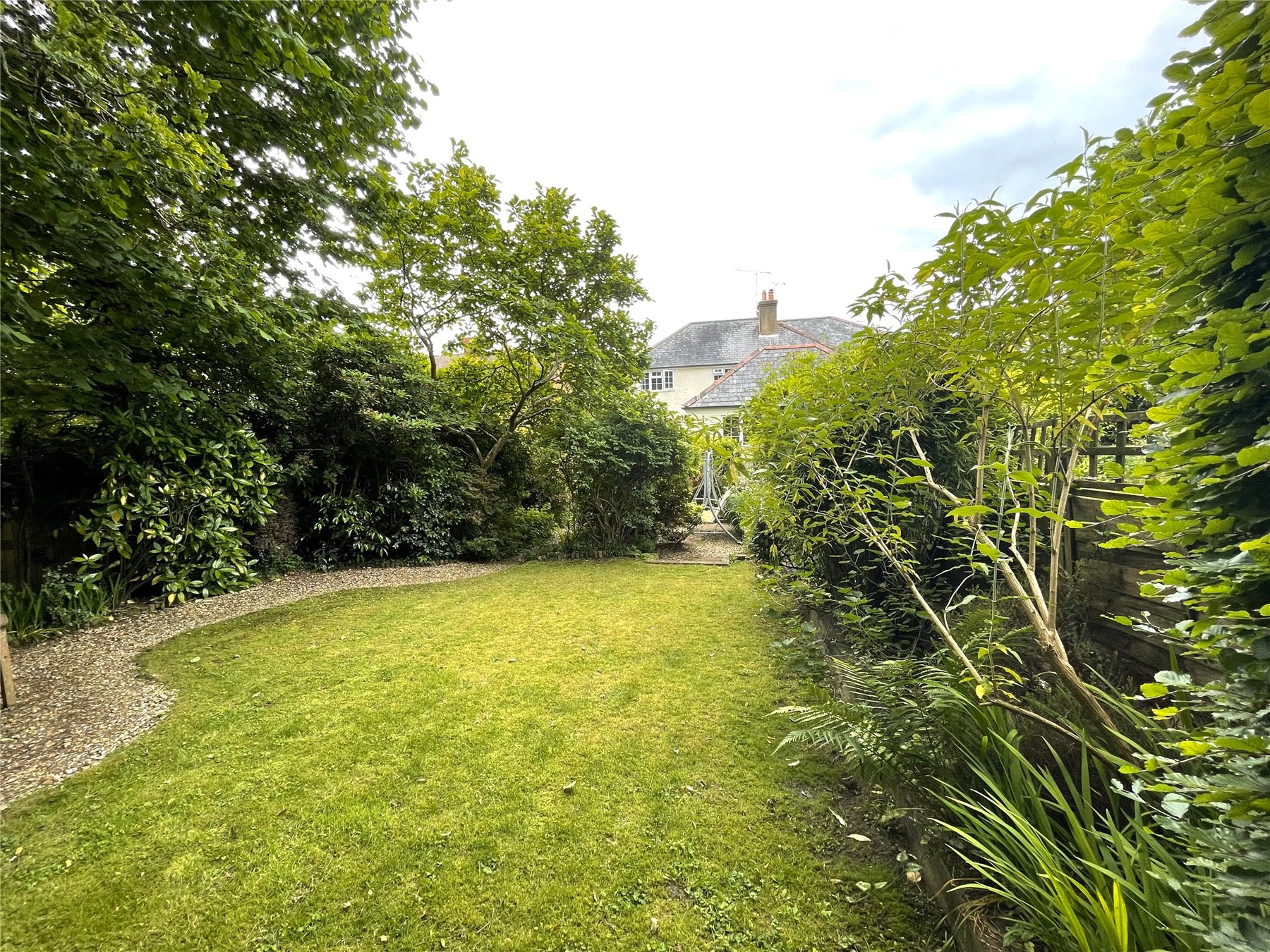 The rear garden is a level and larger than average. Adjacent to the house, and linking the sitting room, kitchen and garden room is a courtyard style patio area, with plenty of space for a dining table with floral borders alongside. Beyond this is a good sized lawn, with mature tree's and shrubs surrounding including a mature magnolia tree. To the end of the garden are two useful sheds, one timber, the other metal with a power supply fitted. Beyond the garden is an open park like green, that is little known, called King George V Green.