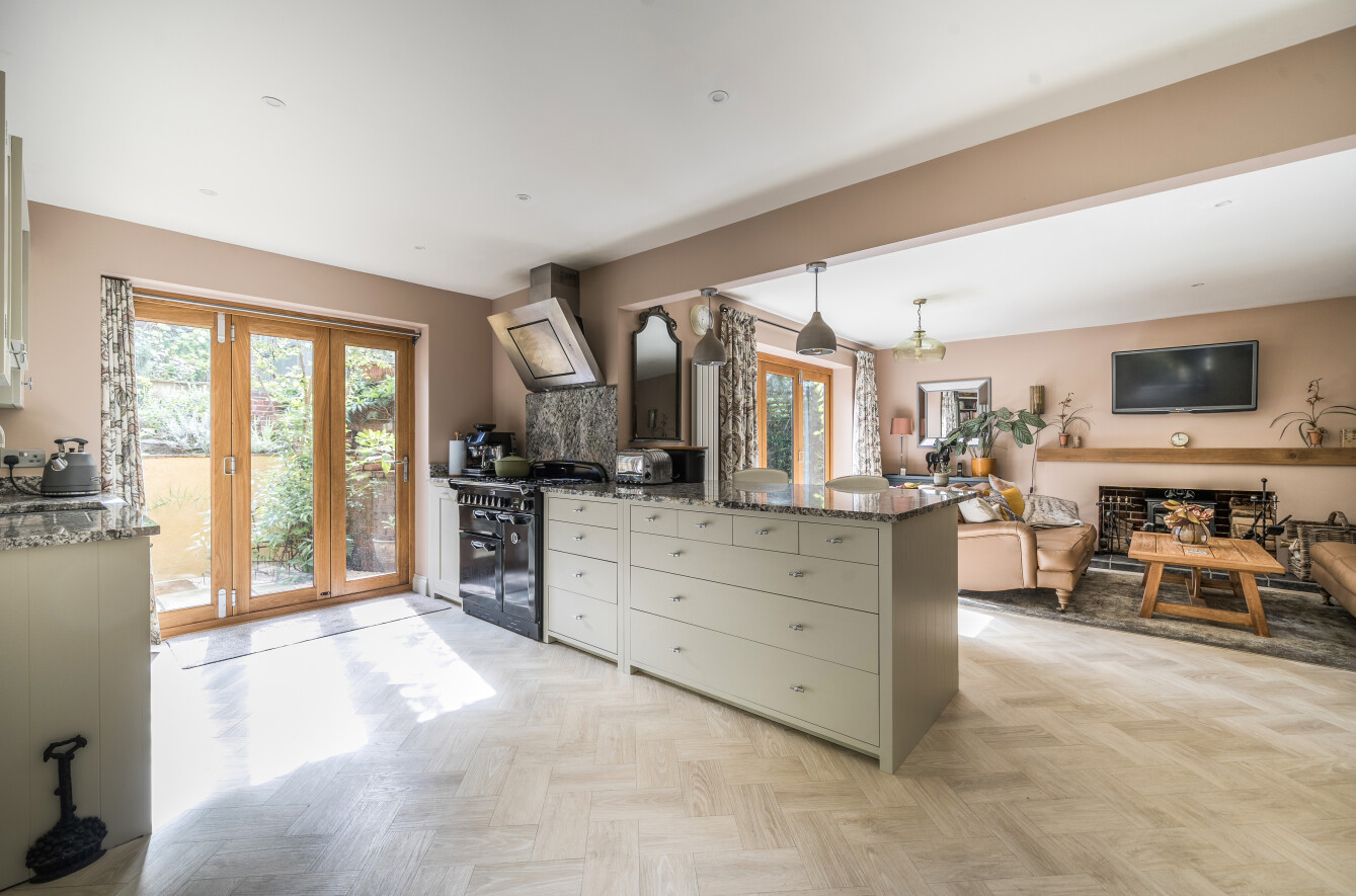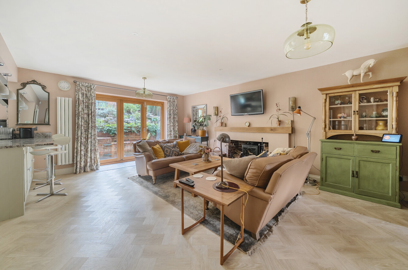 The family room benefits from a wood burner by Jøtul (who offer craftsmanship, timeless design and environmentally friendly heat) which provides a central focus to the room, with the eye drawn out to the rear garden via attractive bi-folding doors.