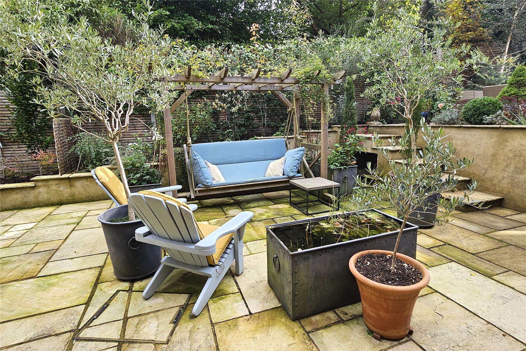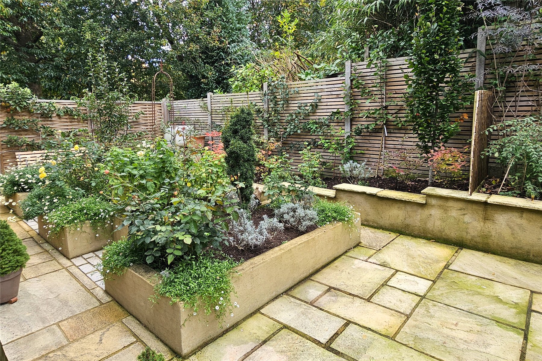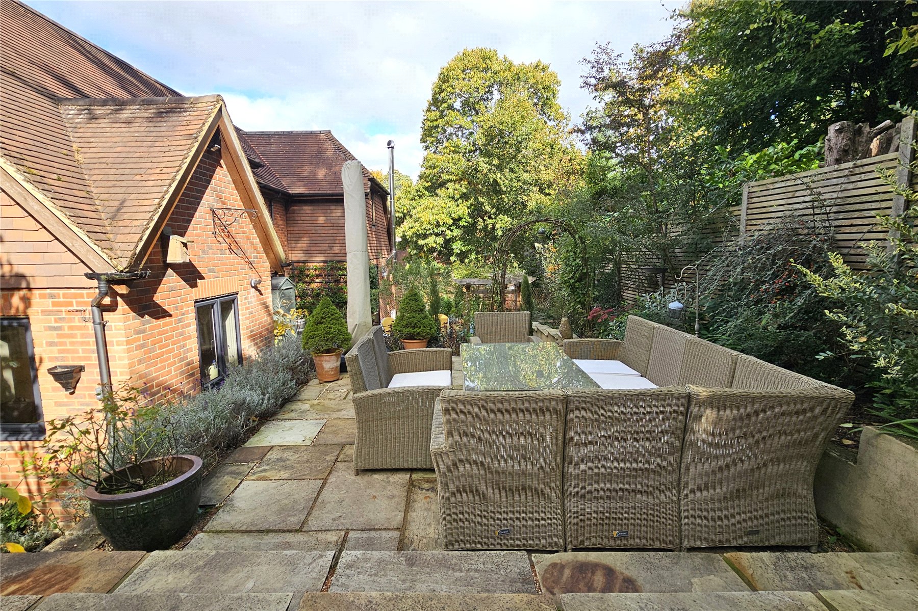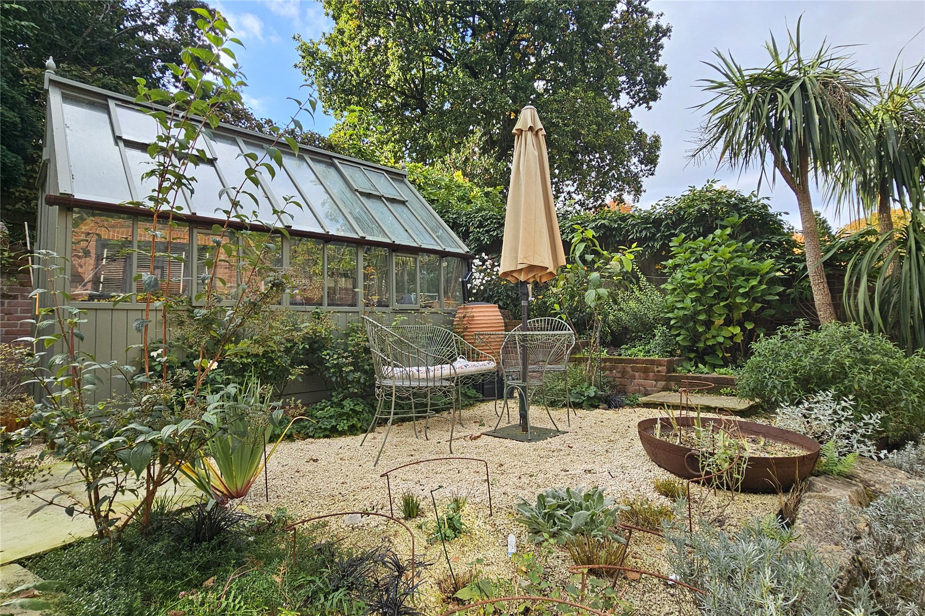 The grounds have been considerately and attractively landscaped to provide both a calm oasis and a great space in which to entertain., with several patio areas catching the sun throughout the day. Attractive rockeries and formal beds are filled with shrubs, trees and perennials providing colour, fragrance and interest in all the seasons. To the top corners are an attractive greenhouse and potting shed.