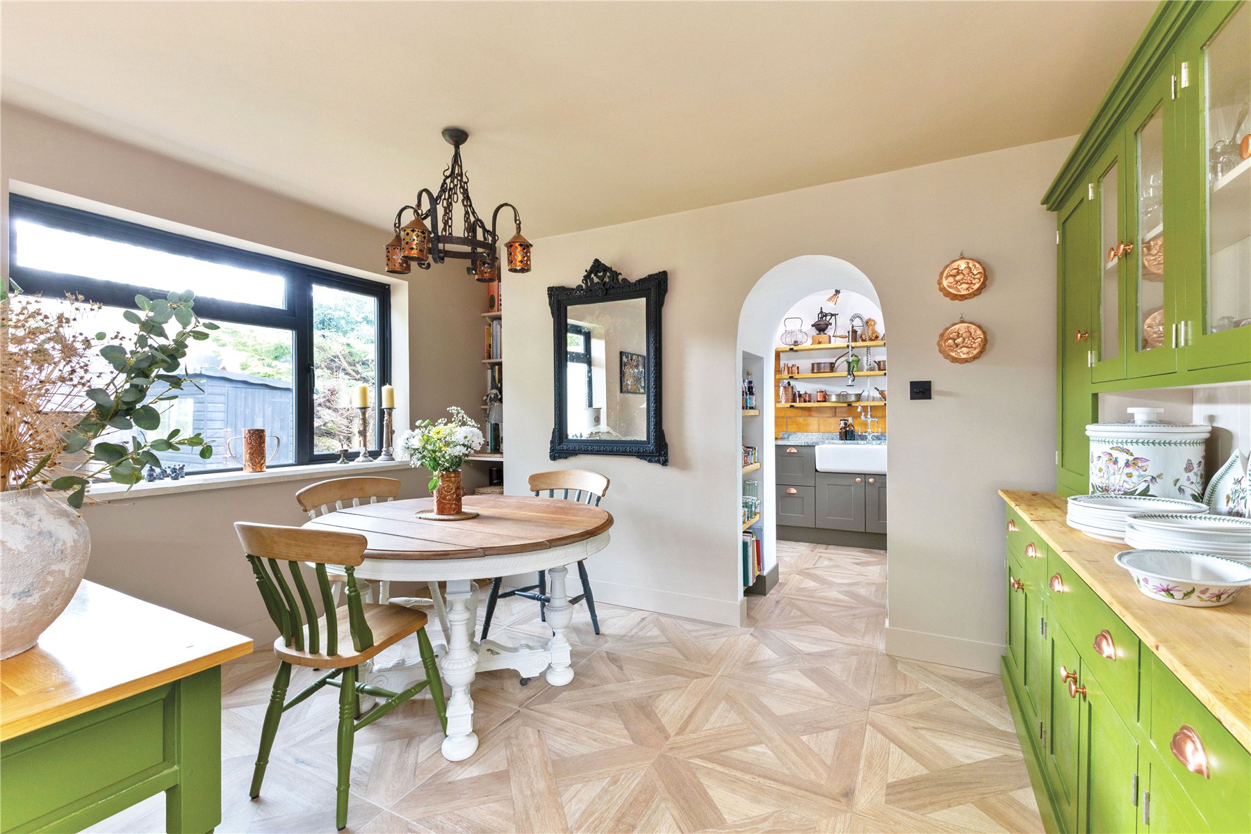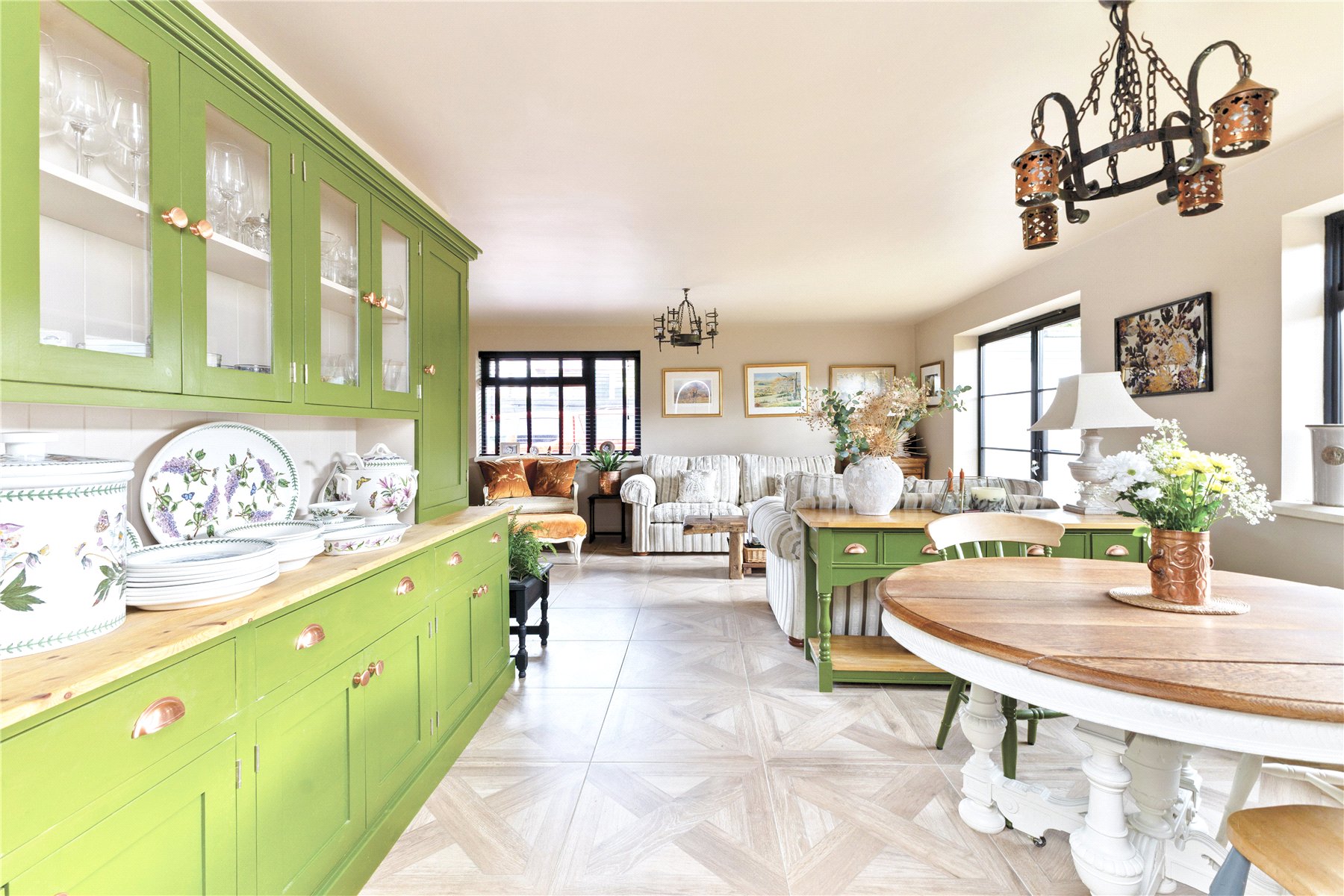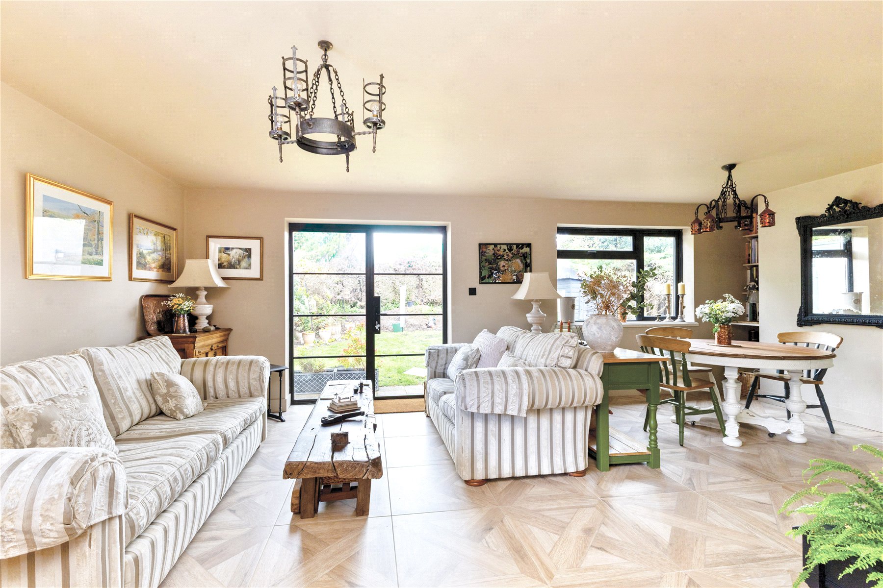 Spacious dual aspect open plan sitting/dining room with patio doors onto the garden; a sunny south-west facing viewpoint