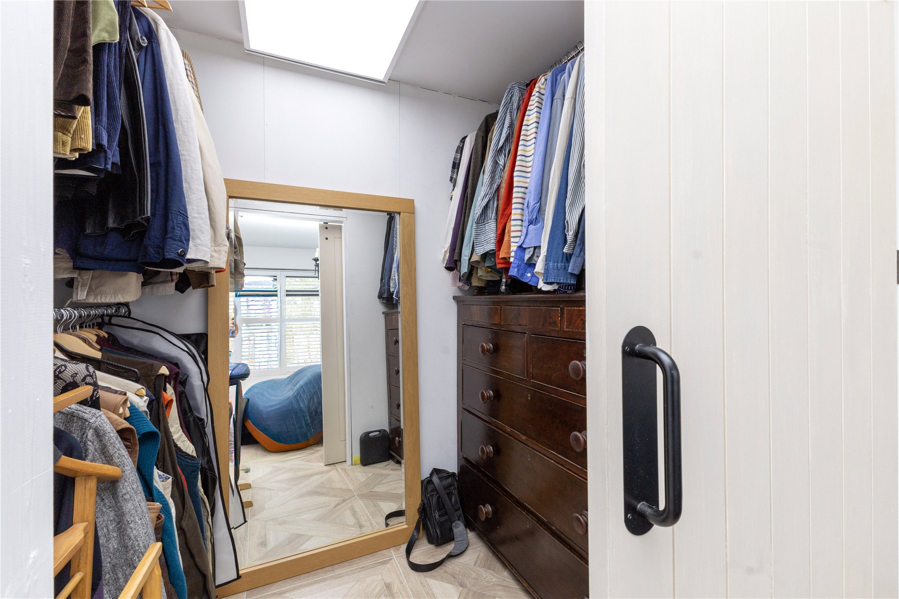 Master double bedroom, with attractive shutters to the window, and a fabulous walk in wardrobe