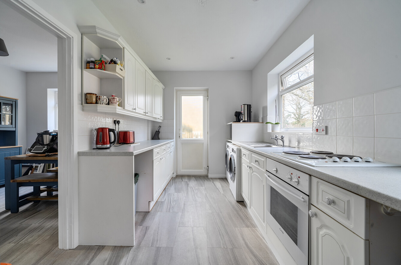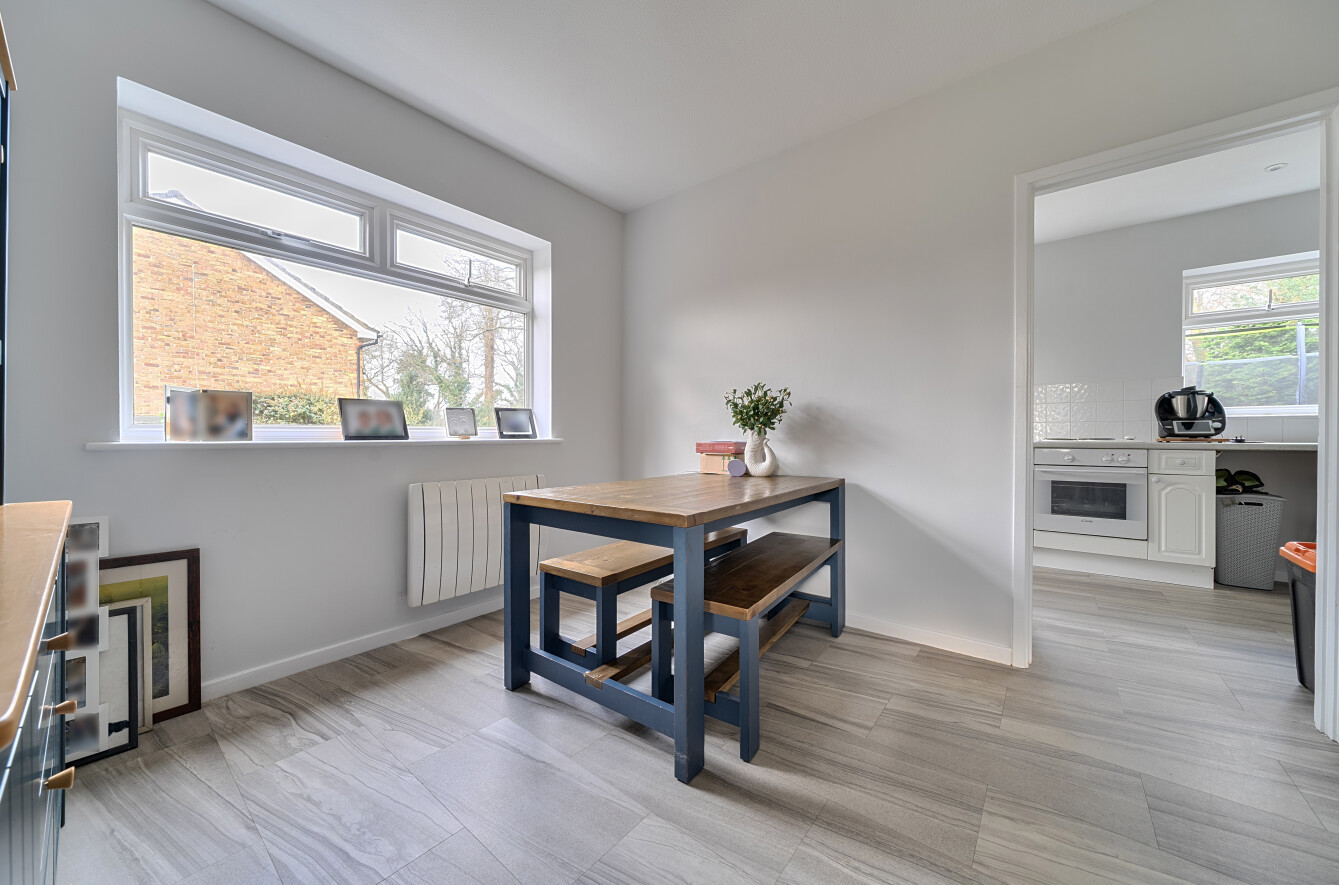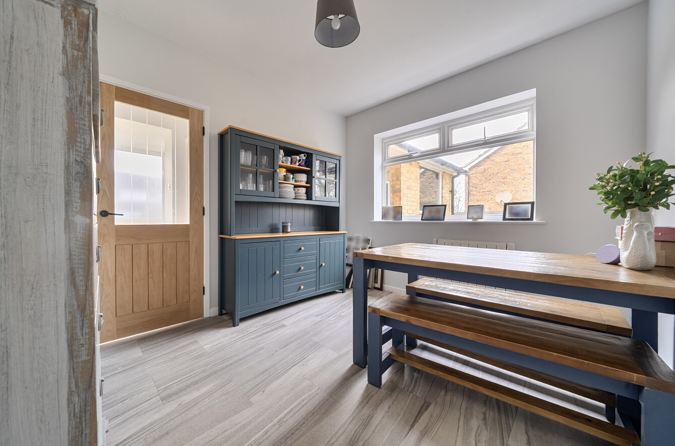 To the rear of the house is the kitchen, which enjoys lovely garden views. There is a range of build in storage, with an integrated oven and hob and space for further white goods. There is a side door onto the garden and a door directly into the dining room. As they sit adjacent to one another, there is naturally scope to open up the kitchen and dining room to create a large kitchen diner if desired.
