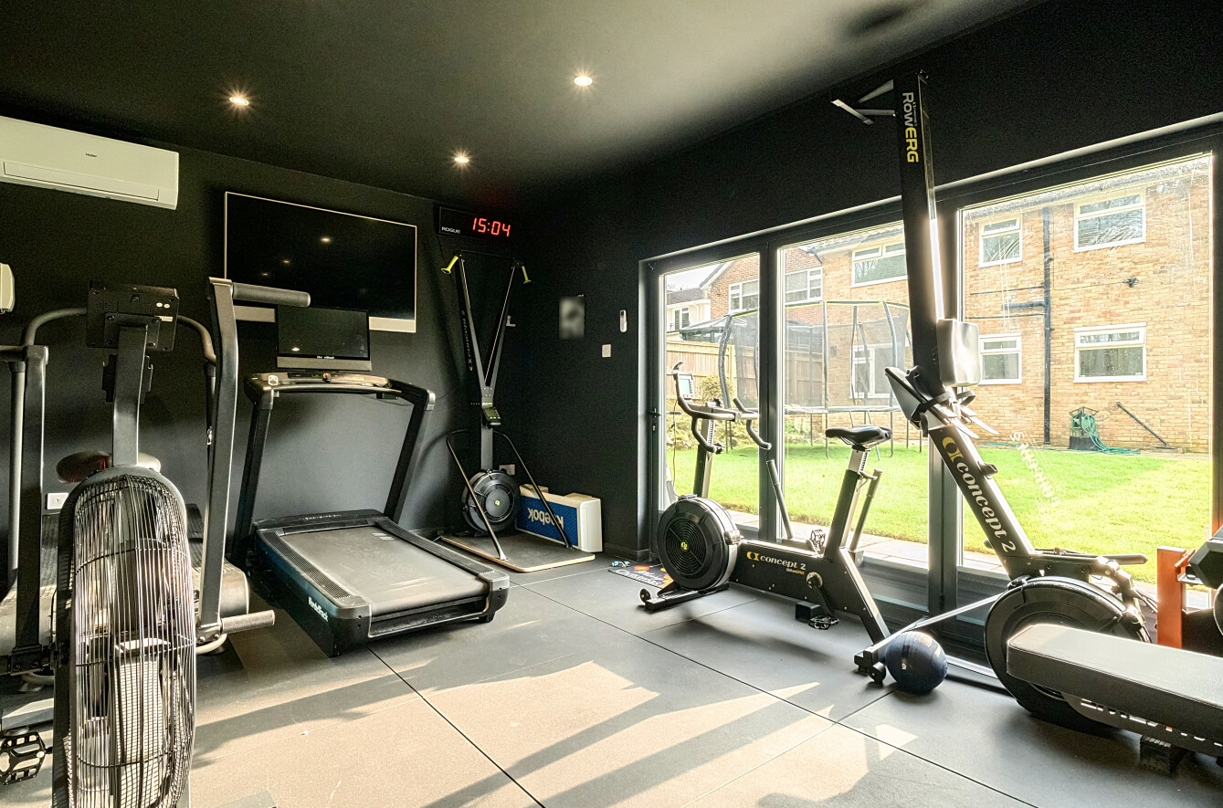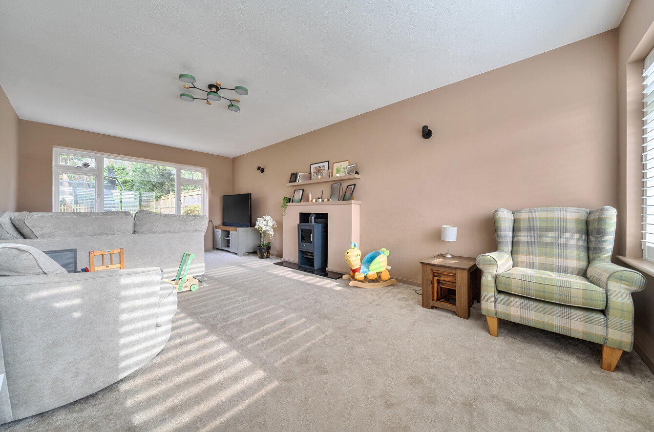 This home enjoys a level rear garden backing onto woodland - a rare find that contributes to the rural feel of the property and offers an abundance of peace and quiet. Adjacent to the house is a paved patio area ideal for dining and entertaining. Beyond this is a good sized lawn flanked by mature beds and rockeries. To the side of the garden (behind the garage) an outdoor fitness area has been created with low maintenance astroturf laid down. However, the real star of the garden is the superb studio that the current owners have added. Standing over 30' in length and offering great versatility, it is currently configured as a 20' home gym with air conditioning and bi-folding doors onto the garden, and a 10'8 office with heating and patio doors onto the garden. A second patio area has been created in front, which is the perfect spot for catching afternoon and evening sun.