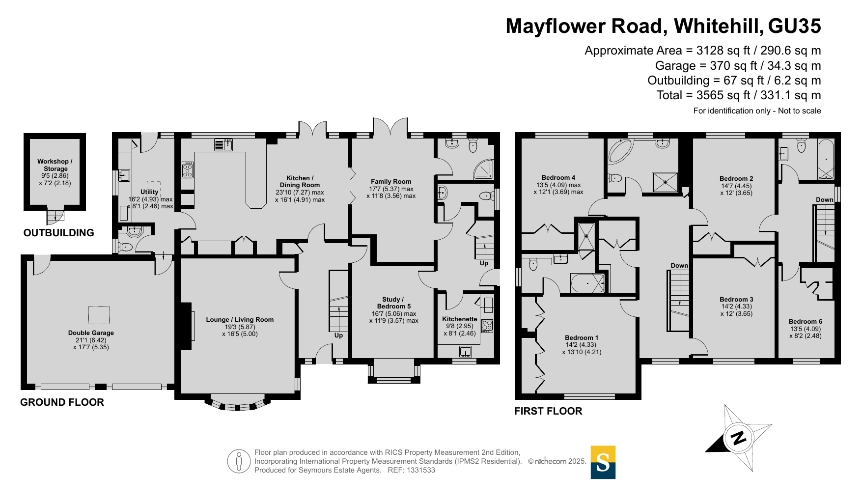 There are two separate staircases to the 1st floor which offers five bedrooms (all with built in wardrobes) and three bath/shower rooms; the master bedrooms being particularly generous with an en suite featuring both a bath and separate shower.