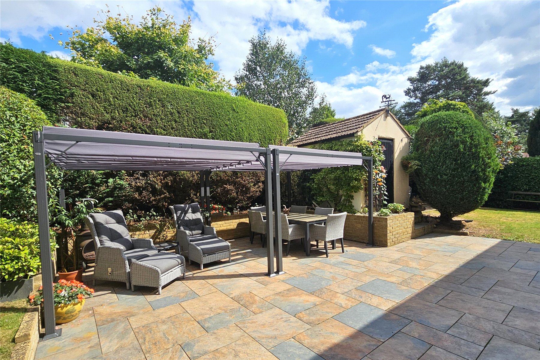 The house enjoys wrap around gardens, mainly laid to lawn with mature tree's and hedging providing screening and privacy, interspersed with shrubs and floral borders. Centrally positioned is an attractive Indian Sandstone paved patio an ideal spot for al fresco dining or entertaining. Adjacent to this is a useful shed with light and power, and finally attached to the dining area is an electric awning, providing welcome shade in the hottest of the sunny weather.