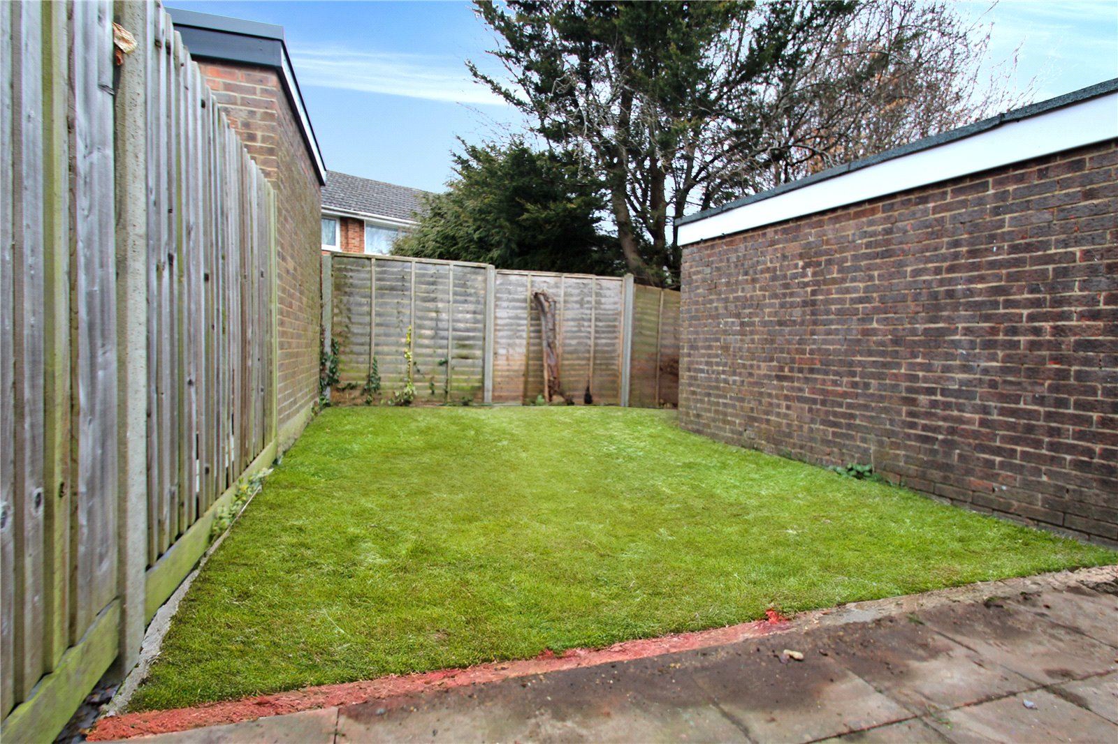 The rear garden with lawn and patio area has a side entrance to driveway and garage. The front is laid to lawn bordered by a small hedge.