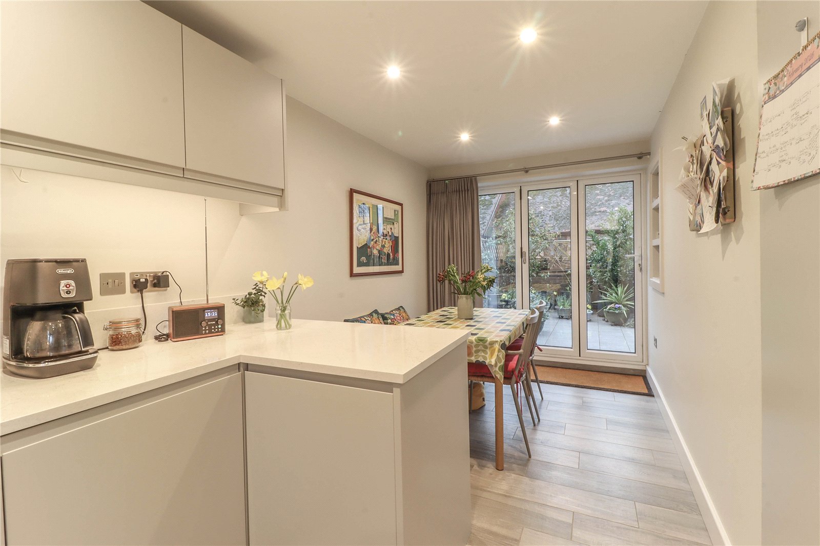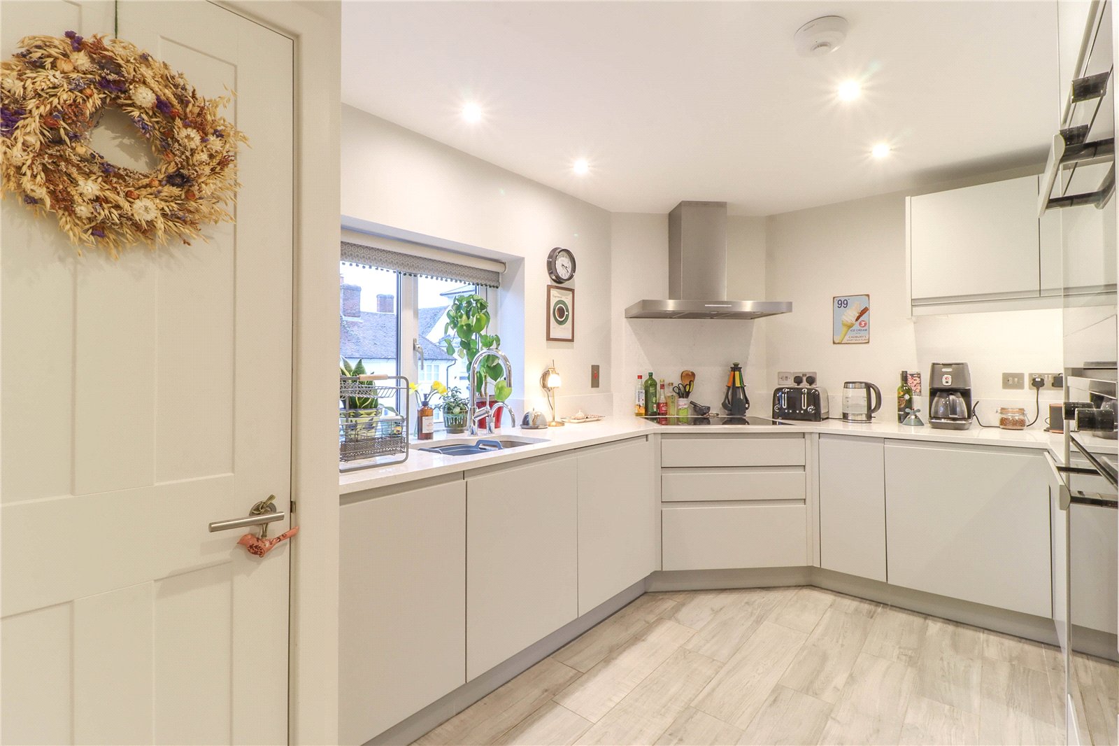 An exciting opportunity to purchase a cleverly and tastefully modernised maisonette, an excellent design has maximised the use of space providing comfortable stylish and well-appointed accommodation. To the ground floor there is a reception hall and spacious utility with comprehensive built-in storage. The first floor provides surprisingly generous living accommodation with pocket doors to maximise space. There is a large dual aspect living room and open plan modern kitchen with separate dining area, both rooms enjoying views to the front over the High Street and towards the Church and glazed doors leading onto the sunny south facing roof terrace, ideal for entertaining. There is also a shower room on the first floor. An attractive open tread oak spiral staircase rises to the second floor where there are two bedrooms and a further new shower room. Outside the entrance to the property is set back from the High Street beneath an arch and there is also the benefit of a parking space to the rear of the property.