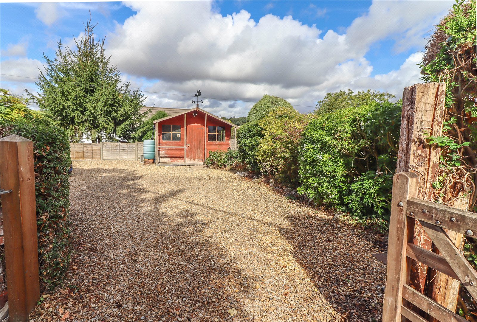 - Gated driveway and southerly facing landscaped garden