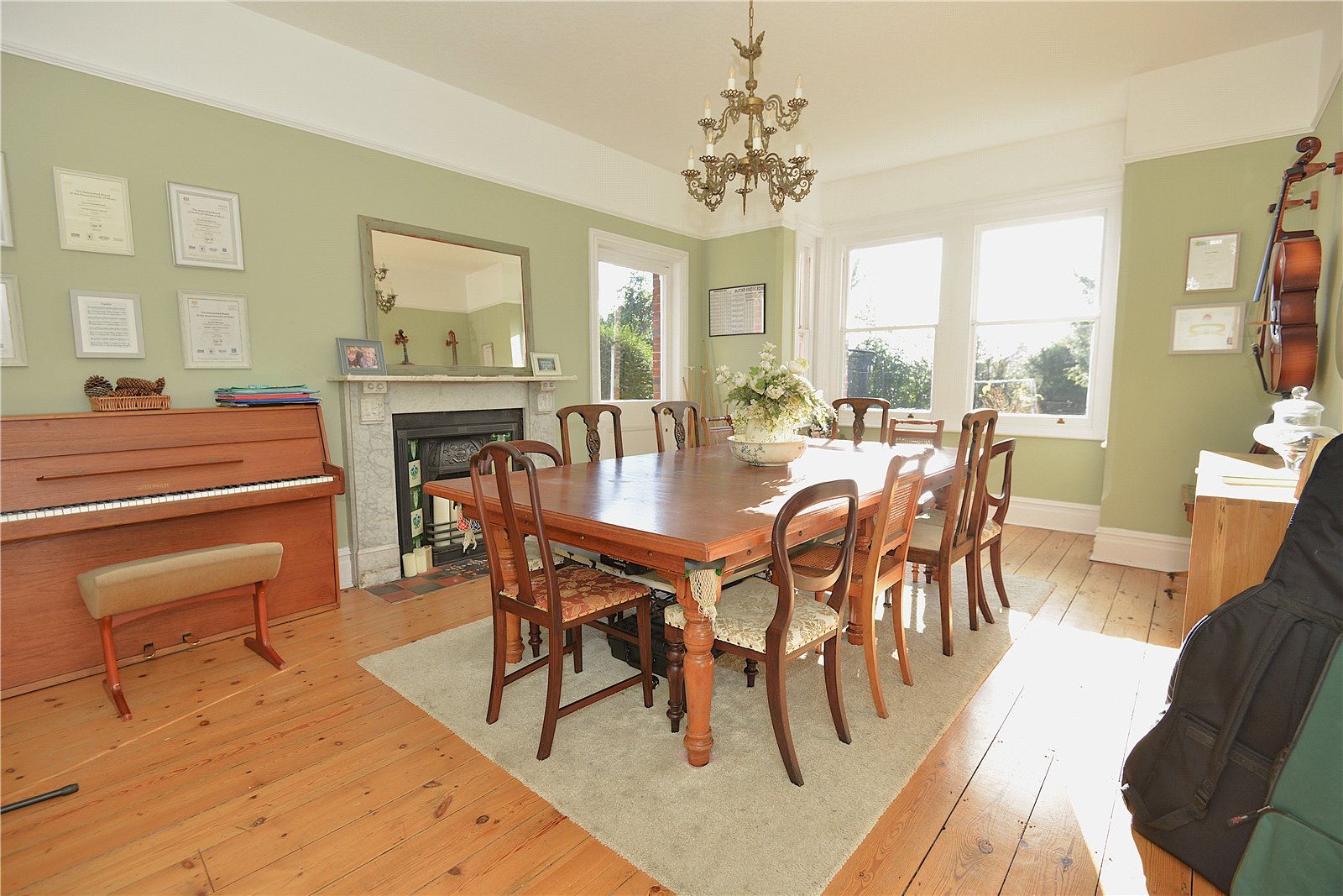 Dining Room 5.94m (19 ft 6in) maximum into window x 3.96m (13ft 0in). Front aspect with box window to front. Fireplace with marble surround and tiled hearth. Exposed floor boards.