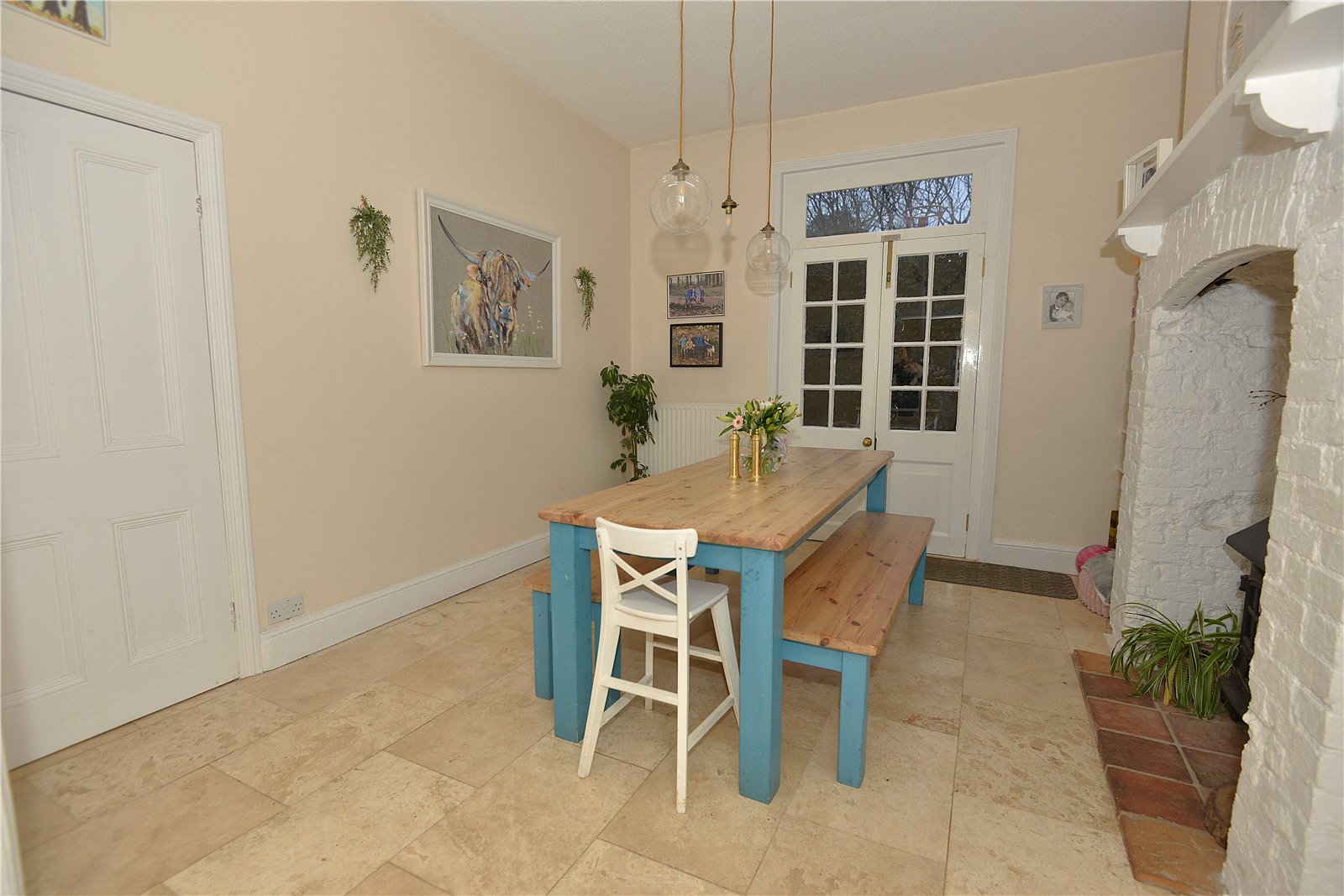 Breakfast Room 3.96m (13 ft 0in) x 3.66m (12ft 6in). Brick fireplace housing wood burning stove. Shelved recess and cupboards to sides. Doors to patio. Tiled floor.