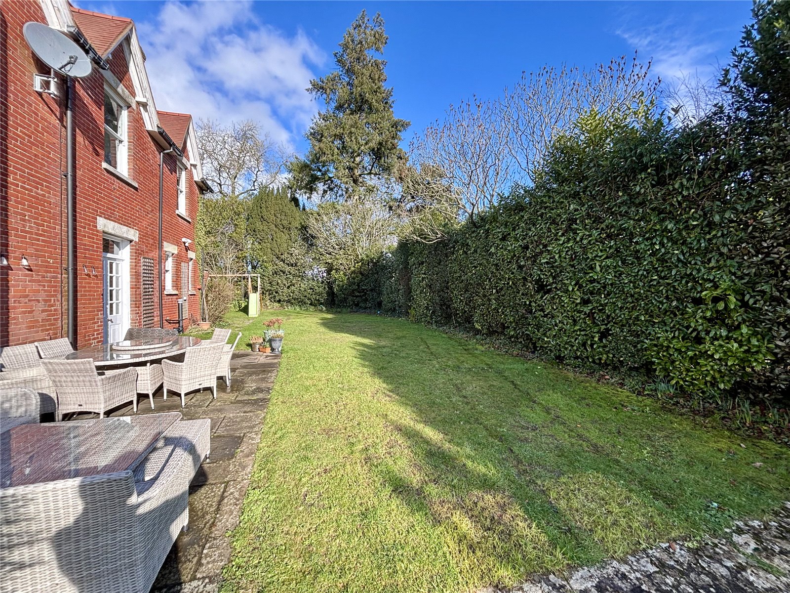 The gardens are predominantly located to the side and front of the house and orientated east and south respectively. A patio sits to the side of the house. Beyond the patio a good sized section of level lawn runs virtually the full depth of the garden from the front to rear boundaries. The lawn is bordered and enclosed by a mature hedge line, allowing for a good level of privacy.