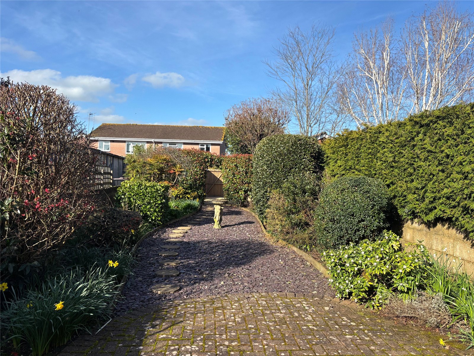 The house is approached through wrought iron gates from the road. At the side of the house are double wooden gates that lead to the rear garden and to the right there is a gravel area that leads to the front door. Immediately to the rear of the house is a paved area that wraps around the house giving useful space for al fresco dining or even the parking of a small car. The rear garden is a particular feature of the property being low maintenance with flowerbeds that border a slate shingle central section with a stepping stone path that leads to the parking area. To the rear of the plot there is a good sized gravel parking area with a useful tool shed. Double wooden gates lead out to the rear which is accessed off Queens Gardens.