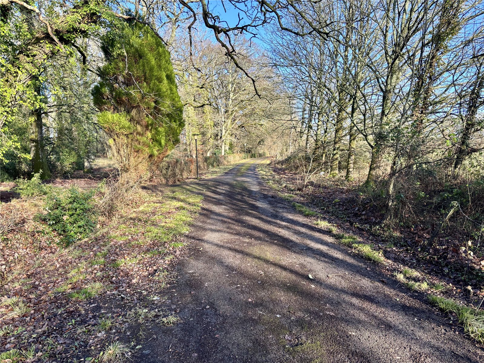 Ashford Water is approached along a long, lit tarmac drive which splits to form a front drive that diverts through Reeves Copse and leads to the gravel area at the impressive front of the property and a secondary, rear drive that leads to the back door and DOUBLE GARAGE block with electric up and over doors.