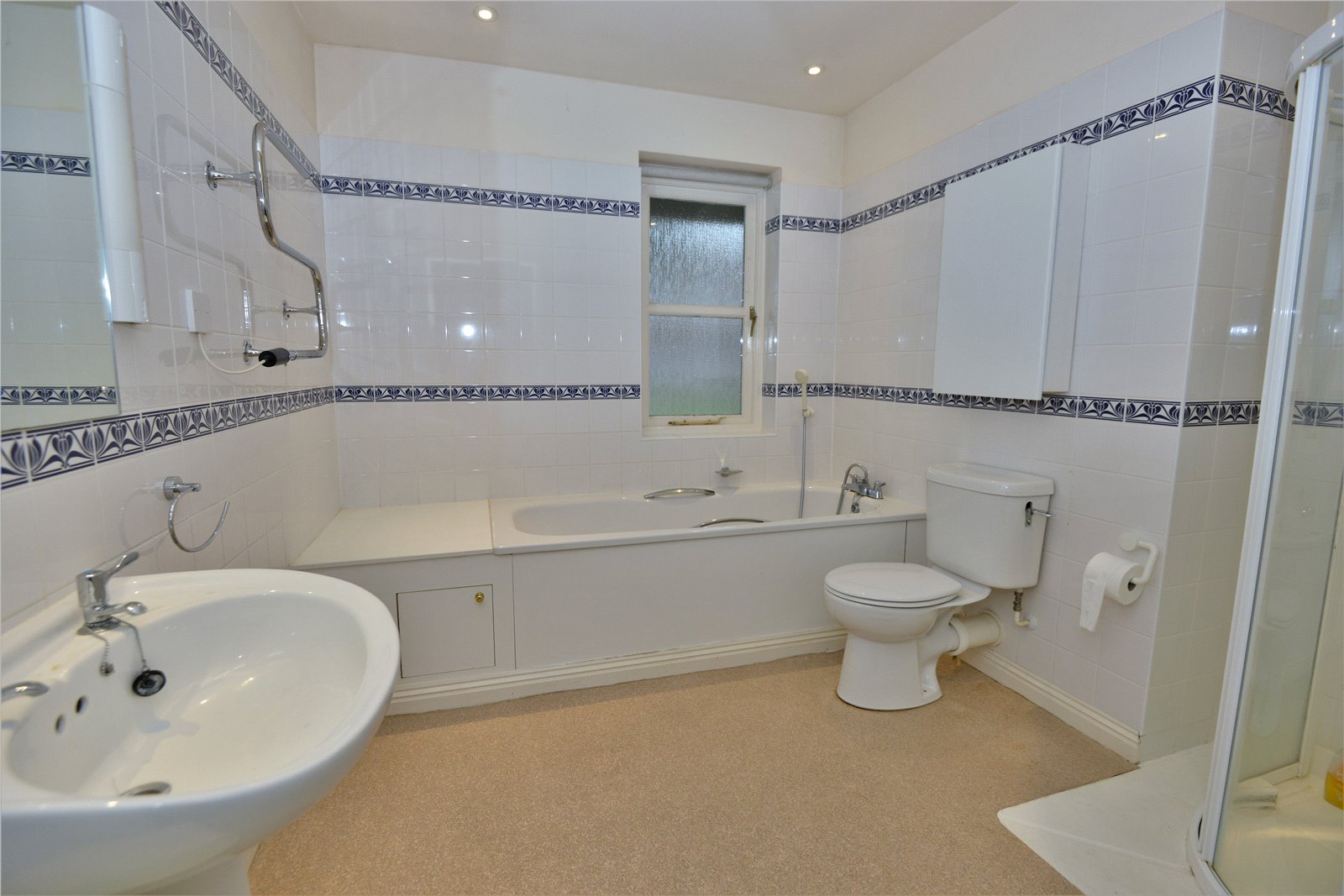 Ensuite Bathroom Panelled bath with shower attachment. Tiled shower cubicle. WC. Wash hand basin. Heated towel rail.