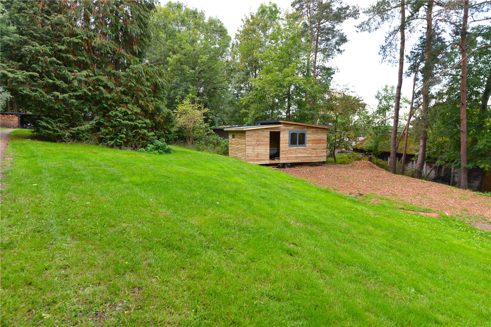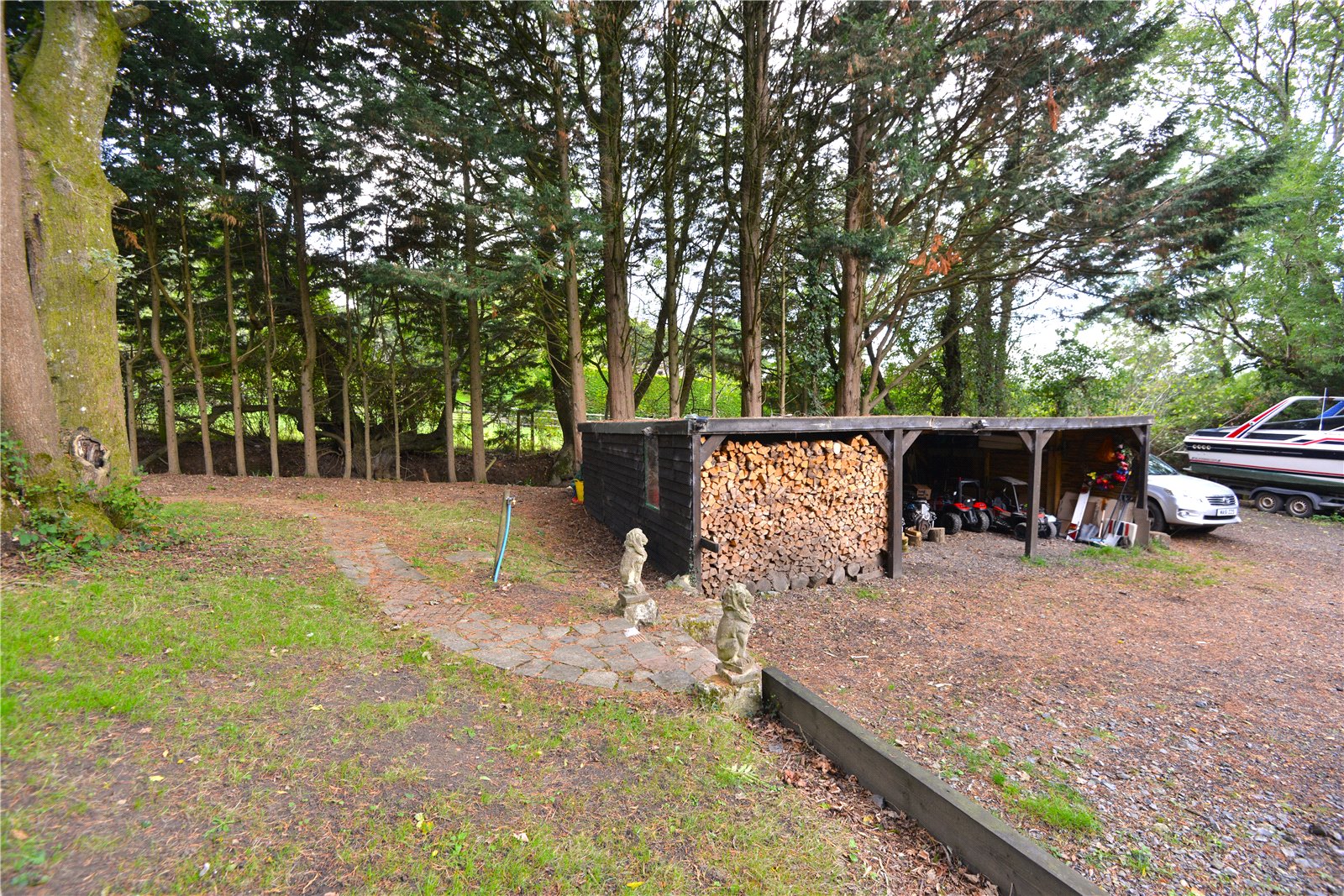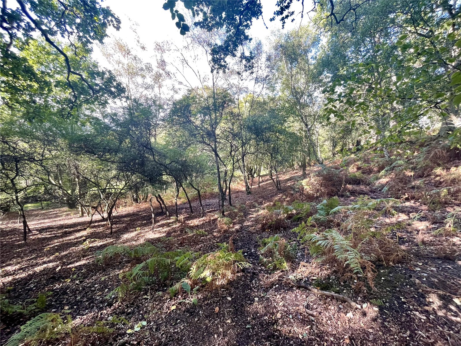 From the parking area a stone and brick pathway traverses the hillside and leads up to the property. The pathway is flanked by lawn to either side with an established tree and hedge line on either boundary including numerous oaks. A gate in the rear boundary fence provides direct forest access as well as access to a separate, fenced area of woodland that extends to approximately 0.39 acre. The property and gardens are extremely private yet not secluded.