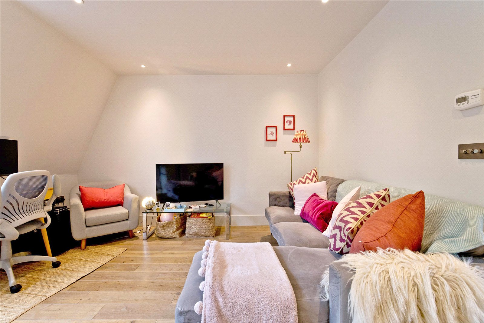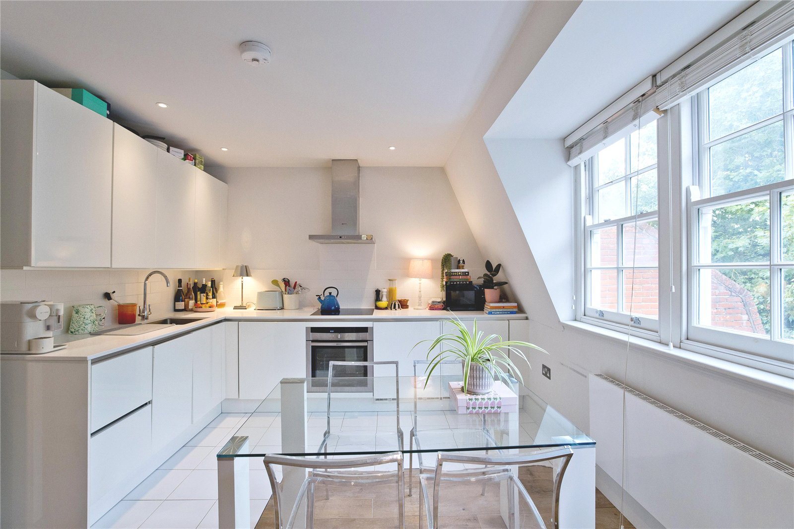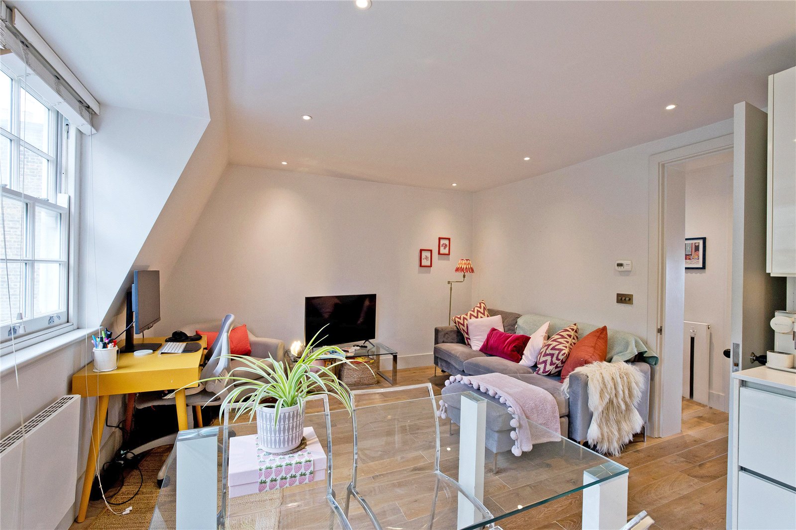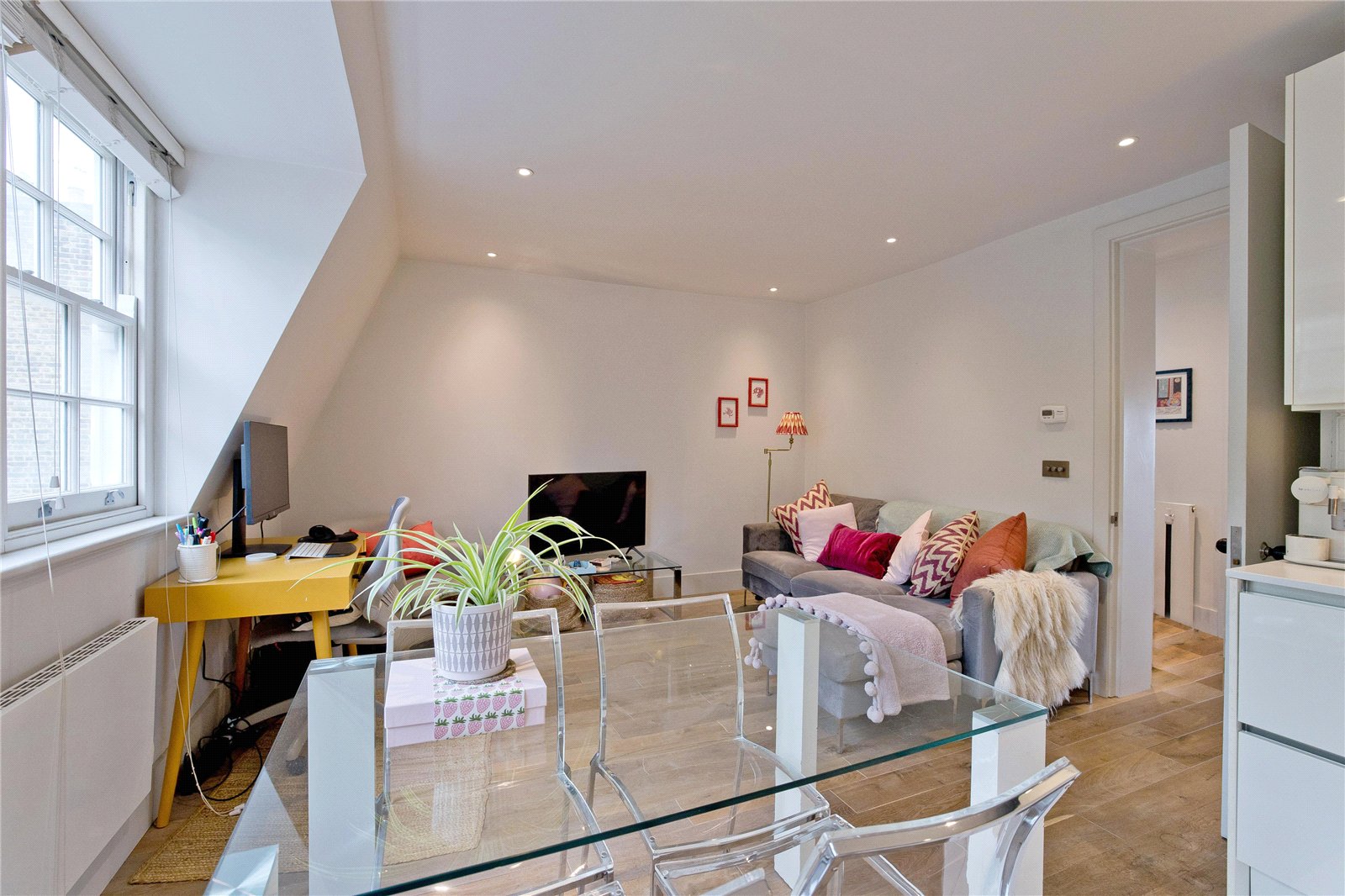 Charming, modern, top floor, one-bedroom apartment situated in a period conversion comprising 3 apartments above commercial of brick construction with pitched slate roof. The apartments within the building are set further back from the street than the shop (a high end retail unit) which is situated at ground level, affording the apartment quiet from the high street. The apartment has been finished to a very high standard with light wood flooring throughout, open plan reception with a fully fitted kitchen, integrated appliances comprising washer dryer, dishwasher, fridge/freezer, hob and oven, stylish, tiled bathroom and power shower.