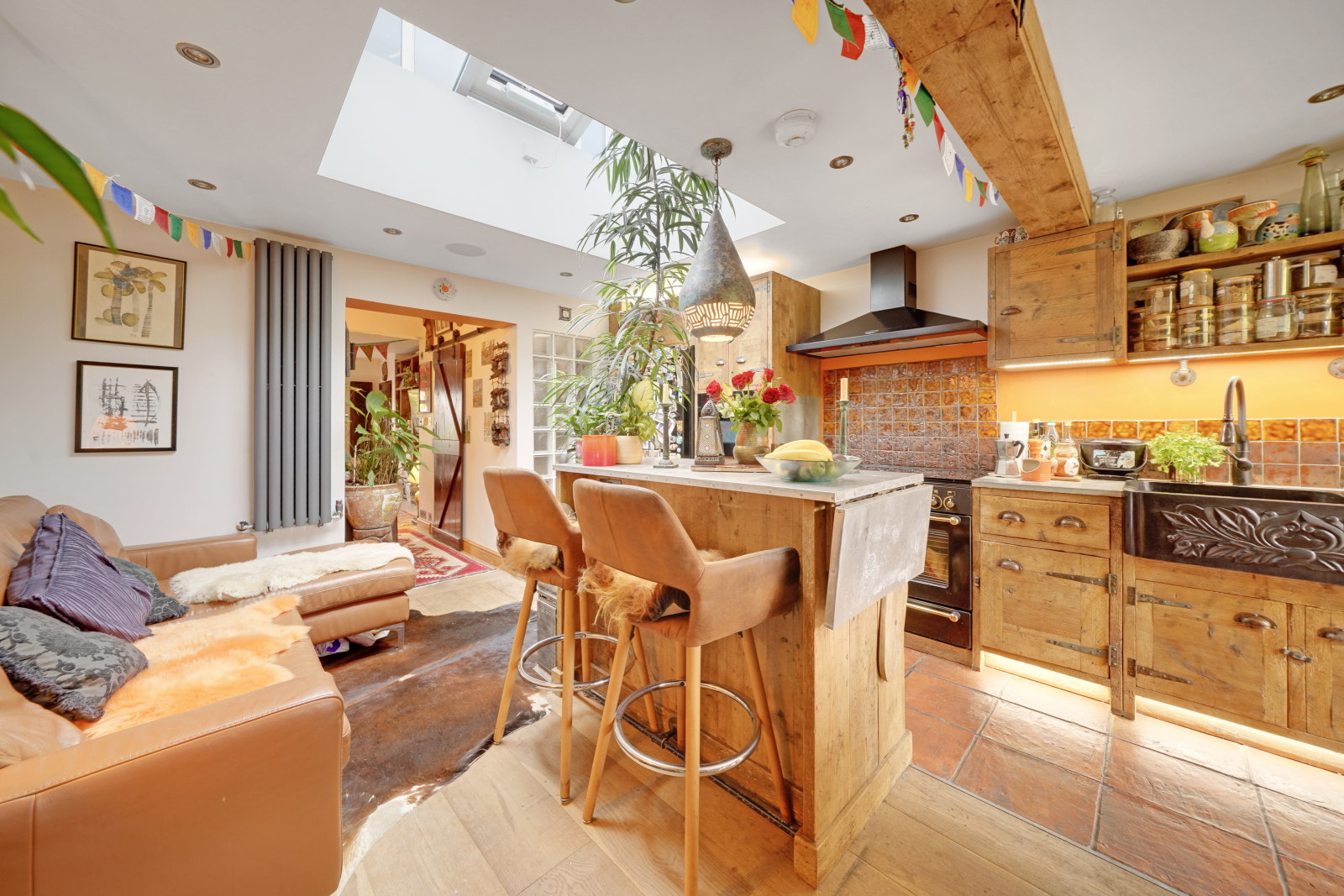 An immaculately presented, two and a half bedroom family home carefully designed by the current owners showcasing intricate detail throughout the house with many bespoke features. The property continues to impress with a mature South-West facing garden which is even more impressive due to the fact that you have bi-folding doors from the kitchen to create a fantastic indoor outdoor space which flows through the ground floor of this property, also a tucked way multi functional too the rear of the garden. With this bespoke kitchen you will be the envy of all your neighbours with the showcase one of piece that was designed for this property. Additionally in the kitchen you have a one off black granite kitchen sink that was especially flown in from abroad for this property furthermore, also Sonor Speakers aswell. Other additional features are breakfast island, apex electrical sky lights adding natural light into the kitchen. The lovely size reception offers cosy and welcoming space that beautifully blends in with the modern comfort.