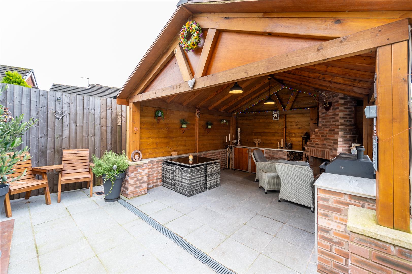 INTERNAL INSPECTION OF THIS INCREDIBLY WELL PRESENTED PROPERTY IS VERY HIGHLY RECOMMENDED. The spacious accommodation on offer briefly comprises; entrance porch, hall, lounge and dining room opening into the conservatory and extended kitchen. To the first floor, there are two bedrooms and a bathroom. At the front of the property, there is space for one vehicle off road, side gate opening into small courtyard area and then round to the rear patio and split level garden with a fantastic bar with log fire electric and dinning area for your Al Fresco dinning all year round