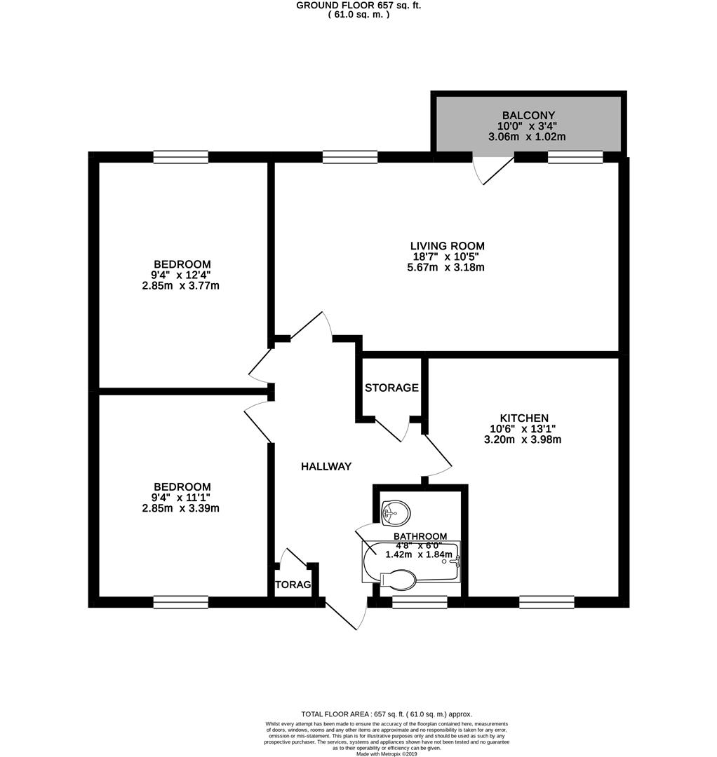 Balcony - 3.05m x 1.02m (10'0 x 3'4) -