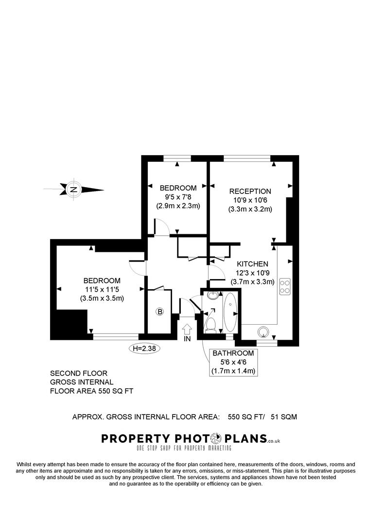 The Gross Internal Floor Area is approximately 550 SQ FT. / 51 SQM.