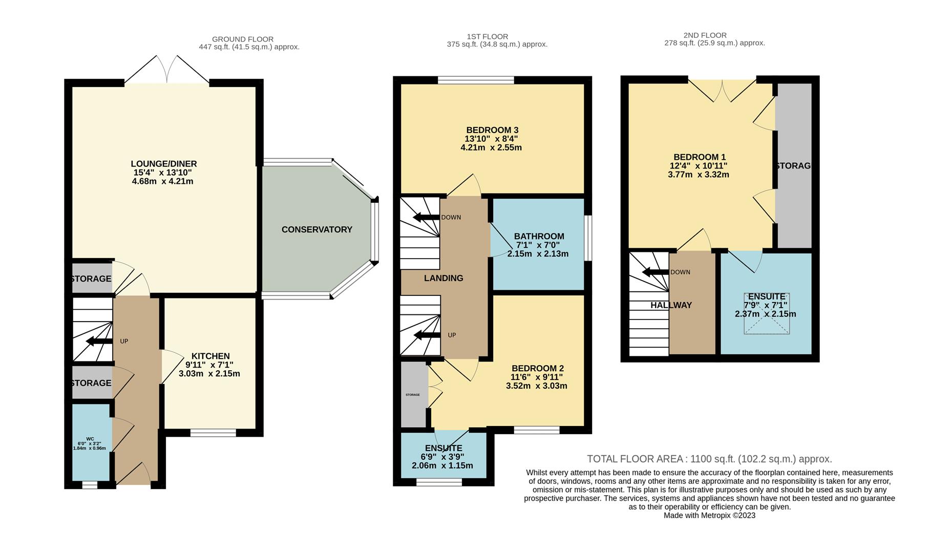 This immaculately presented three bedroom end terrace home with loft conversation is tucked away at the bottom of a quiet cul-de-sac and includes a garage and driveway for two cars. The property, which has been updated by the current owners boasts a modern fitted kitchen with integral appliances and wall and base units, downstairs cloakroom, good sized lounge/diner with french doors leading out to the garden and conservatory. The first floor offers two double bedrooms, one of which has an en-suite, plus there is a well maintained family bathroom. The top floor has been converted and offers a master bedroom with a walk in wardrobe and modern en-suite. Outside there is a low maintenance rear garden, being part decked and part artificial grass. Further benefits include having the possibility of extending (Subject To Planning). Ridgeways is located within the popular Church Langley development which offers local shops and schools nearby.