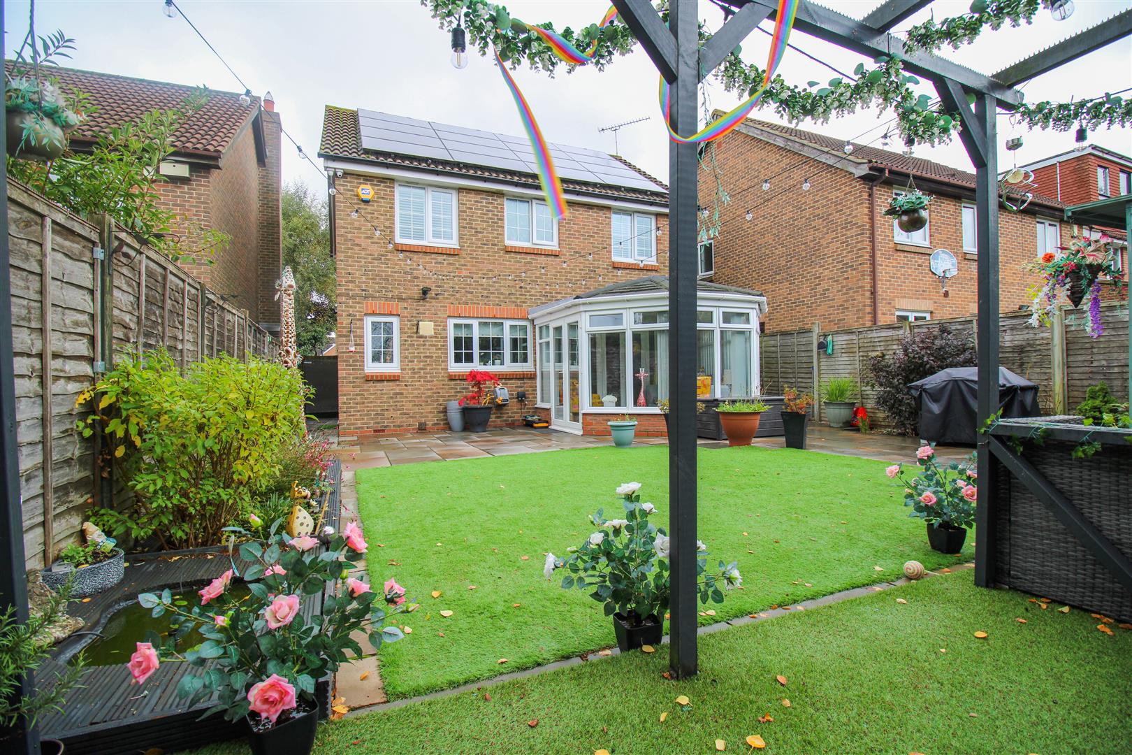 Located in a quiet cul-de-sac is this immaculately presented four bedroom detached family home with a large driveway. On the ground floor there is an entrance hallway leading to a lounge, dining room, stunning kitchen which has been extended into part of the garage with a range of fitted wall and base units with integrated appliances, a conservatory (with cosytop roof) and a cloakroom/WC. Upstairs there are four bedrooms with a shower room off the master and a stunning family bathroom with a white three piece suite. Outside, the un-overlooked west facing rear garden is mainly laid to artificial lawn with a patio area, summer house and side access leading out to the newly laid driveway for three or four cars. Bentley Drive is located just off Kiln Lane, within walking distance of excellent local schools, shops and open fields.