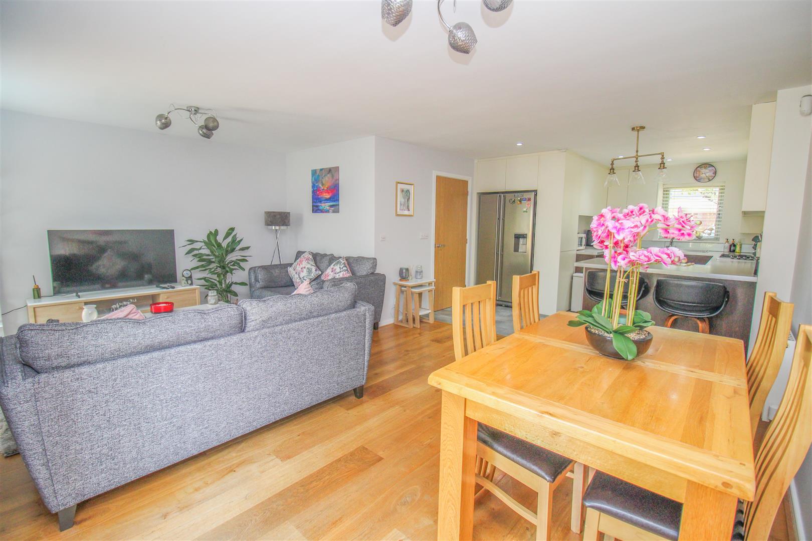 Offered with NO CHAIN is this immaculately presented three bedroom link detached family home, located in the highly desirable area of Newhall and includes parking for two cars. On the ground floor there is an entrance hallway leading to a large open plan space, with a lounge/diner and modern kitchen with a range of fitted wall and base units with some integrated appliances, plus a cloakroom/WC. Upstairs there are three bedrooms, with a large ensuite shower room to the master plus a beautiful family bathroom. Outside, the rear garden is mainly laid to artificial lawn, with a patio area and mature plants, with the parking spaces to the side of the house. Harrowbond Road is found just off Canopy Lane, within walking distance of excellent local schools, shops and cafes and open fields, plus the M11 and Train Station are close by.