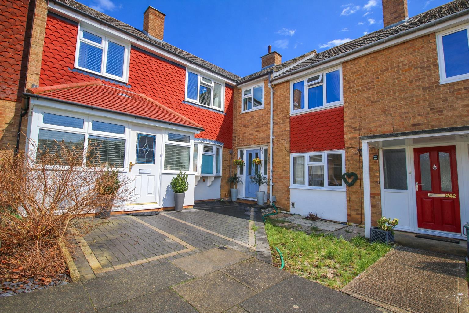 This beautifully presented four bedroom family home includes a corner plot garden and potential for a driveway to the rear. On the ground floor there is an entrance hallway leading to a stunning, open plan lounge/diner and kitchen with a range of fitted wall and base units, a breakfast bar and a media wall, plus a utility room and a cloakroom/WC. Upstairs there are four good sized bedrooms and a family bathroom with a white three piece suite and underfloor heating. Outside, the split rear garden is mainly laid to lawn with a patio area, garage/outbuilding and potential for a driveway, with rear access leading out to further parking bays, plus there is a small green to the front. Abbotsweld is located just off Partridge Road, between Bush Fair and Staple Tye, with local schools, shops and open fields within walking distance.
