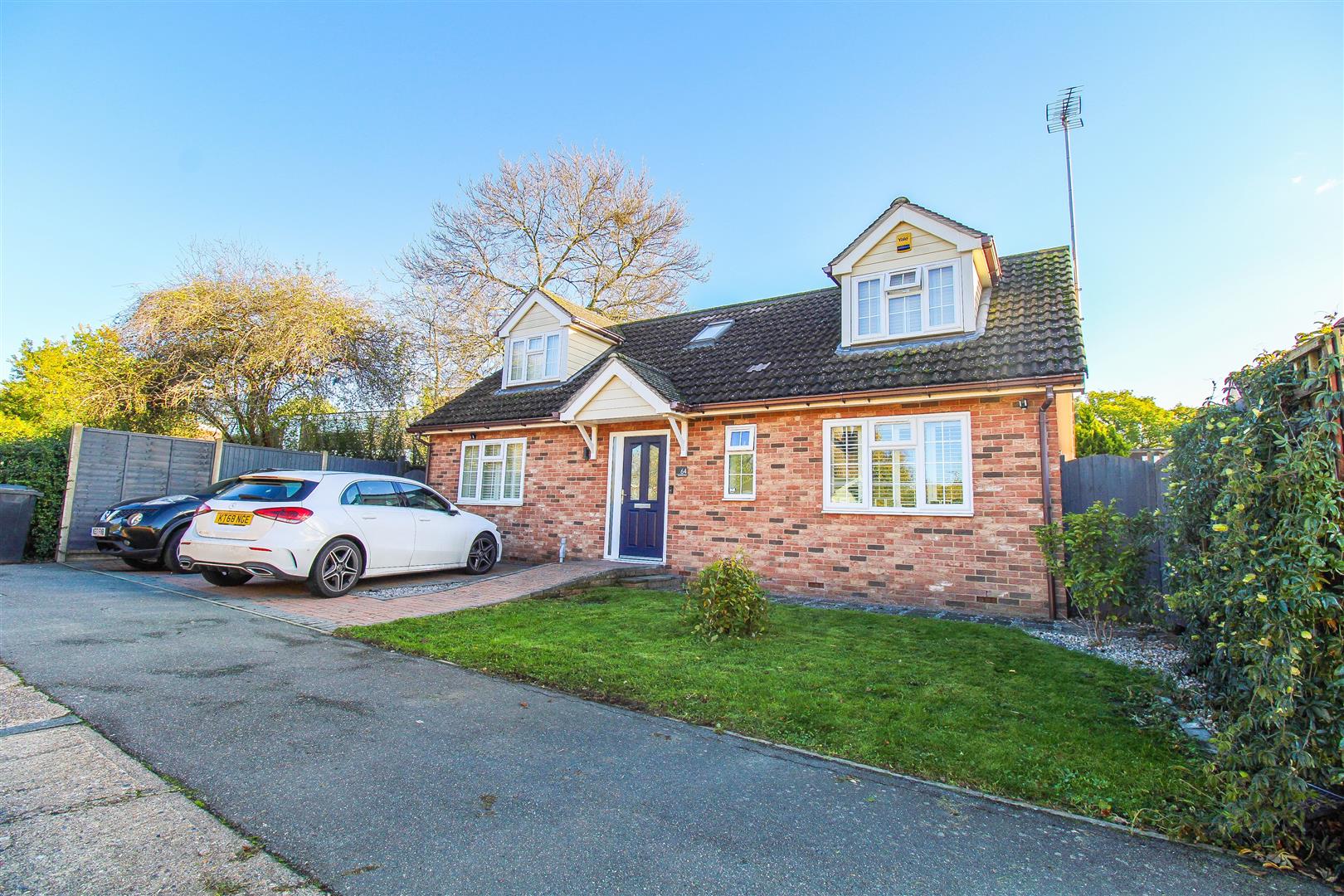 This well presented three double bedroom chalet bungalow has been recently modernised throughout and is located at the end of a quiet cul-de-sac with ample parking. On the ground floor there is a large entrance hallway leading to a stunning kitchen with a range of fitted wall and base units with integrated appliances and an island with breakfast bar, a large lounge with french doors to the garden, a dining room, a double bedroom and a modern shower room. On the first floor are two further double bedrooms and a family bathroom with a white three piece suite. Outside the rear garden is mainly laid to astro turf with a large patio area, shed and side access to the front of the property where the driveway and front garden is. Brook Lane Field is located off Southern Way, within walking distance of excellent local schools, shops and Latton Common, with the M11 junction close by.