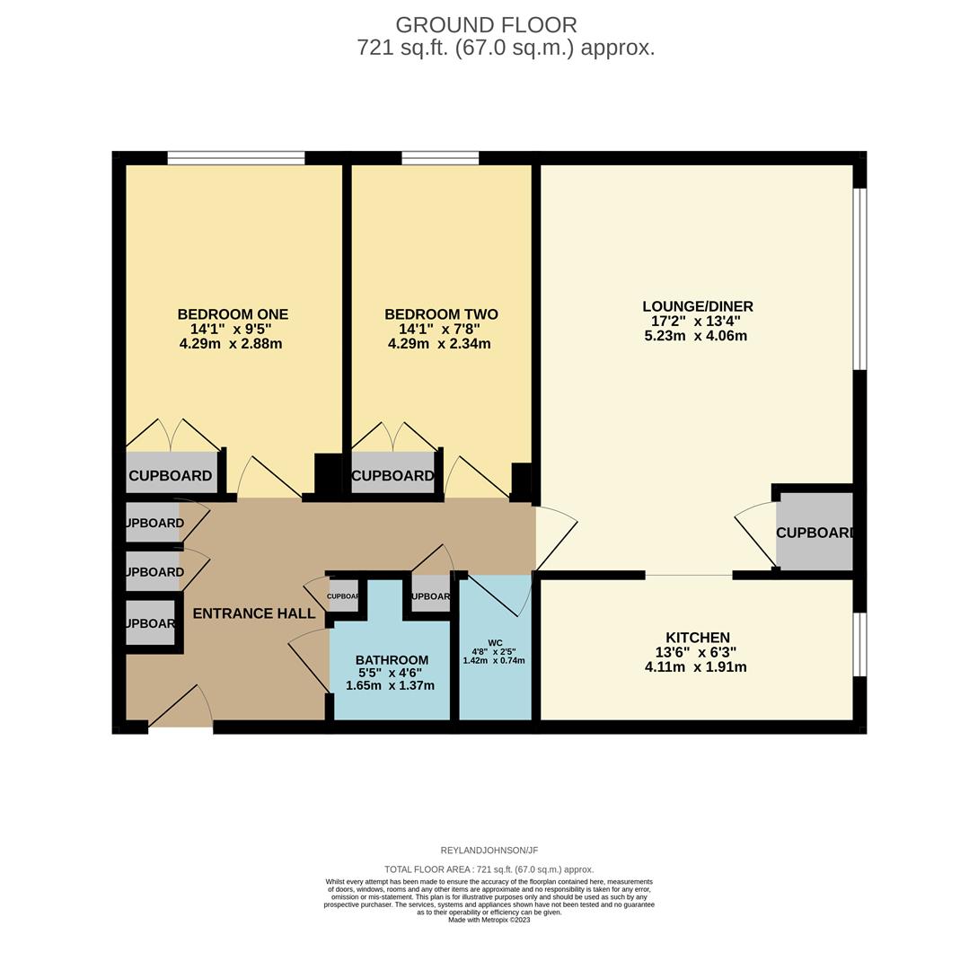 An immaculately presented two bedroom top floor flat. The property comprises an entrance hall leading to a lounge/diner, modern fitted kitchen with a range of fitted wall & base level units, bathroom with a white suite, separate WC and two double bedrooms with built in cupboards. Other benefits include lift access and a storage cupboard. Lease: 91 years remaining, Service Charge: £129 per month.