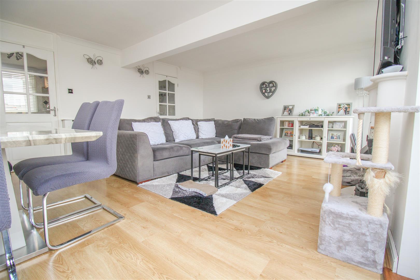 This immaculately presented three bedroom terraced family home includes a garage and driveway and is located in a quiet cut-de-sac. As you enter there is a porch and hallway leading to a large lounge/diner, modern fitted kitchen with a range of wall and base units with integrated appliances and a cloakroom/WC. On the first floor are three bedrooms and a family bathroom with a modern white three piece suite. Outside, the rear garden is laid to patio, with a shed and rear access out to a small green, with the garage and driveway to the front. Peterswood is located close to Staple Tye, with local schools, shops and open fields within walking distance.