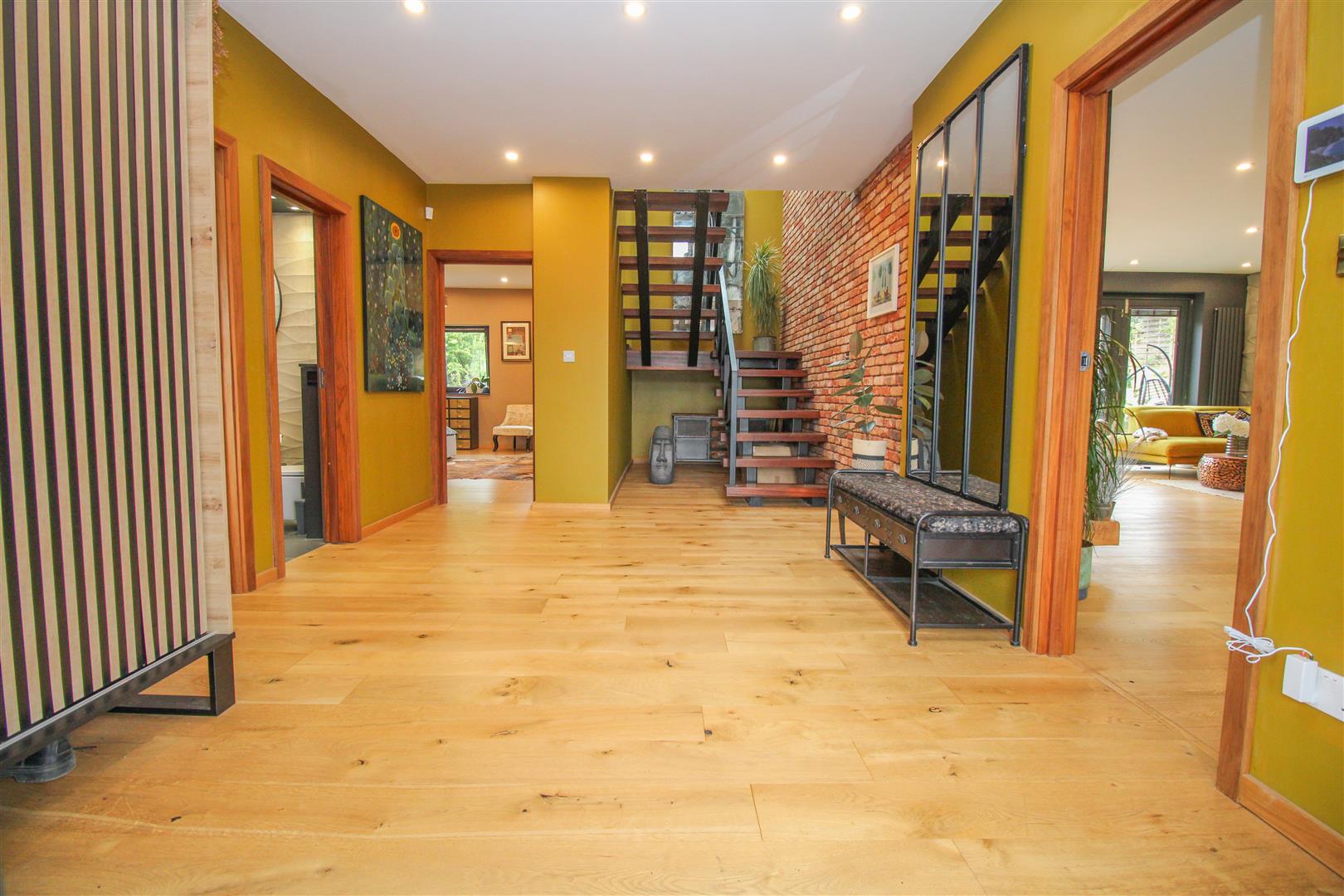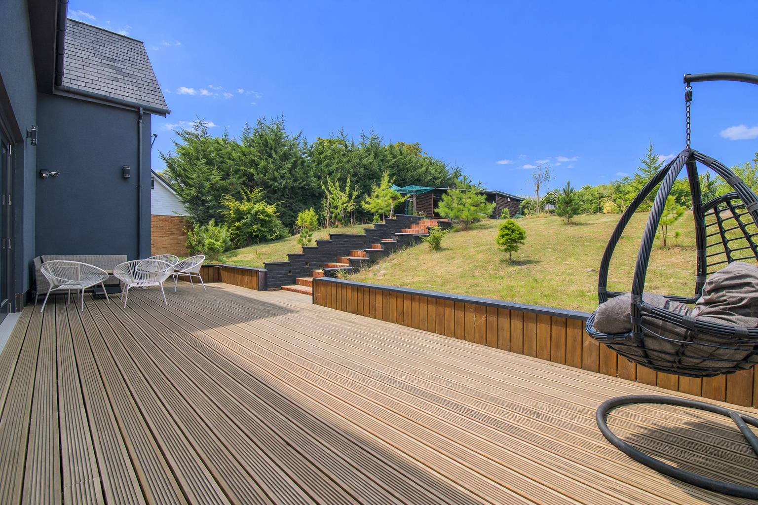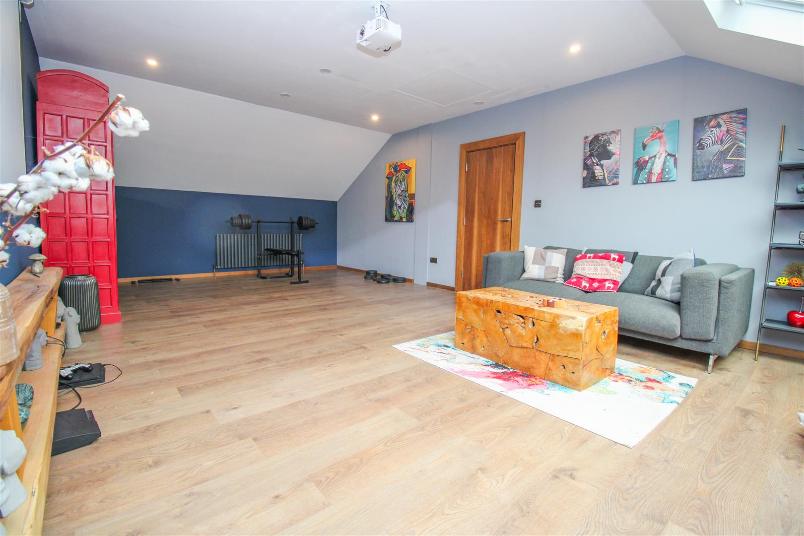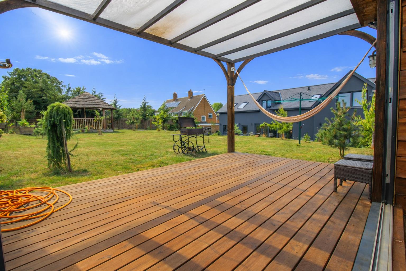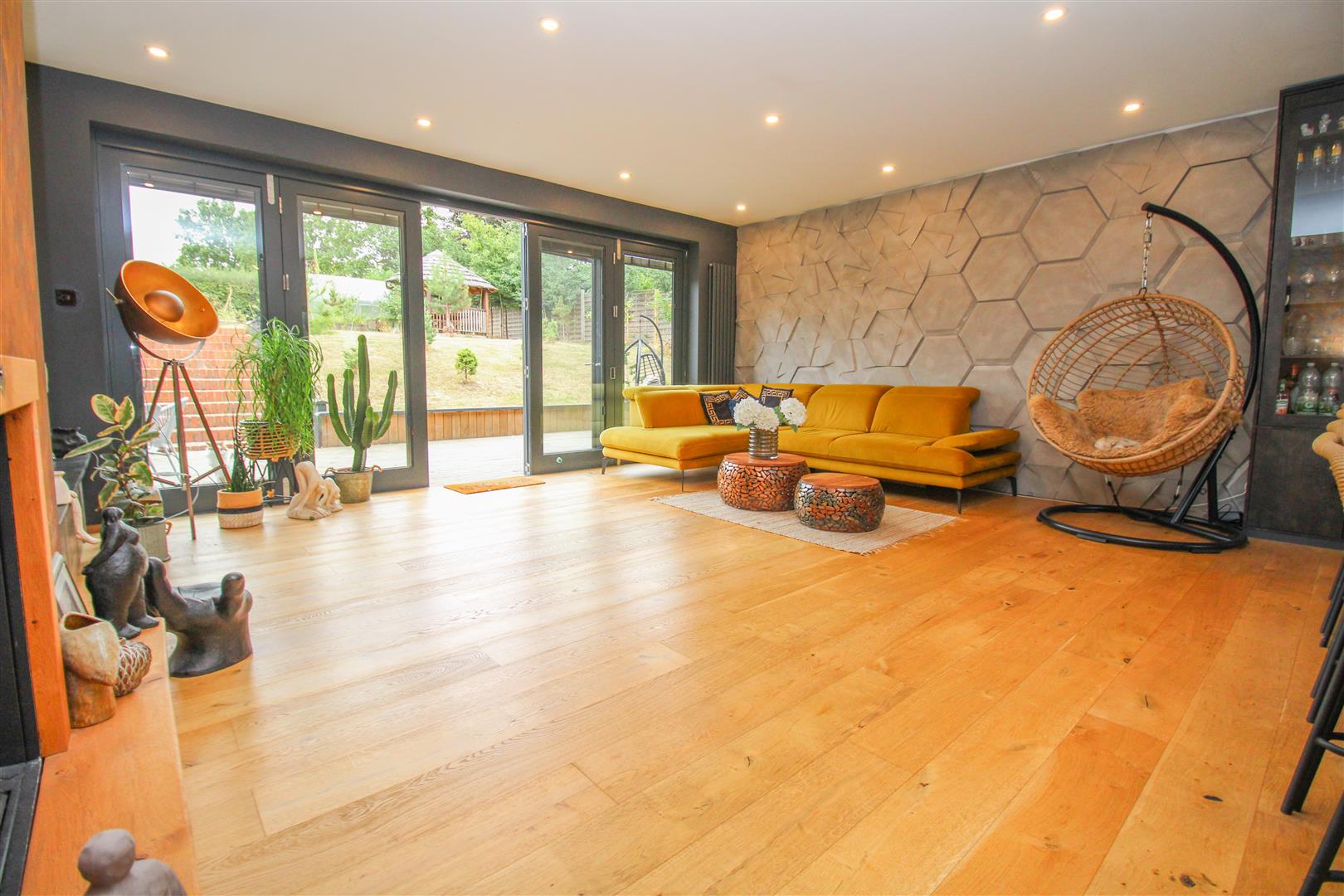 Offered with NO CHAIN is this absolutely stunning, completely unique, four/five double bedroom detached family home finished to the highest of standards, complete with an outbuilding which includes a hot tub and sauna. As you enter there is a large hallway leading to a huge 20ft x 26ft kitchen/lounge/diner, with a range of fitted wall and base units with integrated appliances, an island/breakfast bar, bi-fold doors and a feature gas fire, a large bedroom/reception room, beautiful bathroom and a study/laundry room. Upstairs there are four large double bedrooms, one of which is being used as a cinema room, a stunning family bathroom and a spacious landing with a seating area. Outside, the large rear garden is mainly laid to lawn with various seating and patio areas, plus an outbuilding including a hot tub and seating area, showers, a toilet and a sauna (which could be converted into an annexe). Other benefits include an integral double garage and a large driveway, underfloor heating in all bathrooms and the entire outbuilding and an alarm system throughout. Hawkenbury is located in the highly desirable area of Harlow, known as 'The Parks', just off Paycock Road, with excellent schools, shops and open fields within walking distance.