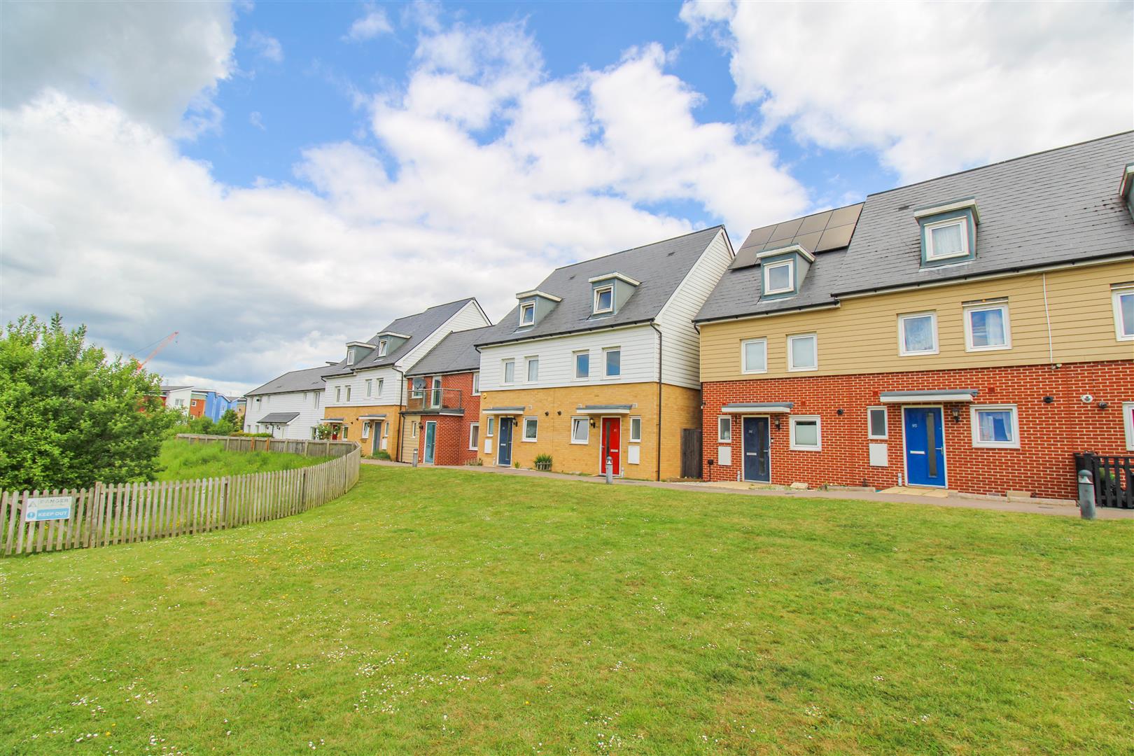 Located overlooking a green is this three bedroom end of terrace home with allocated parking for two vehicles. The property is set over three floors and comprises an entrance hall with cloakroom/WC leading to a kitchen with a range of fitted wall and base level units with some integrated appliances, lounge/diner, first floor landing, two double bedrooms and a family bathroom to the first floor, second floor landing leading to a master bedroom with walk in dressing room and en-suite shower room. Outside the rear garden is laid to AstroTurf lawn with a decking area and rear access. Bowhill Way is located on the popular Fifth Avenue development and is just a short walk to Harlow town centre, Princess Alexandra hospital, Harlow town park and Harlow town train station with direct link to London Liverpool Street station. Please note there is a development service charge which is approximately £350.00 per annum. Chain Free.