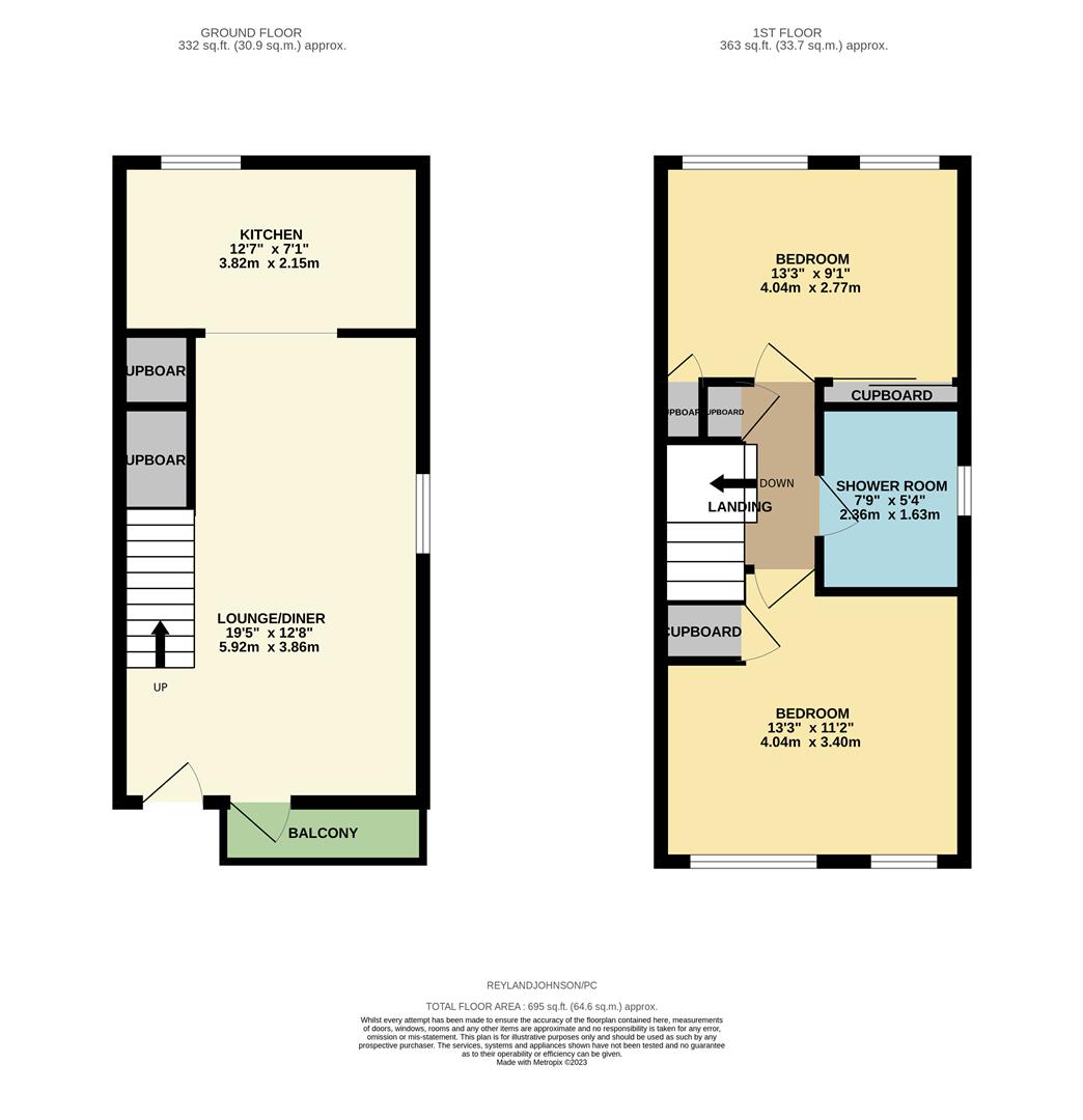 A two bedroom end of terrace split-level maisonette with a balcony and garage en-bloc. The property comprises an entrance hall leading to an open plan lounge/diner/ kitchen with a range of modern fitted wall & base level units and some integrated appliances, landing, two double bedrooms and a modern shower room. Park Court is a private development located in central Harlow with the town park, Princess Alexandra Hospital, Harlow town shopping centre and train station all located just a short walk away. Lease: 937 years remaining, Service Charge: £95.00 per month.
