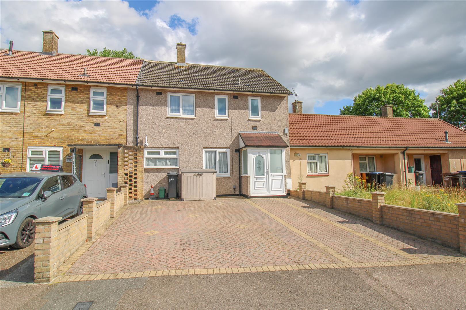 This well presented three bedroom home is located in the popular Mark Hall South area of Harlow and includes a large driveway for multiple vehicles. The property comprises an entrance hallway leading to a modern fitted kitchen with a range of fitted wall & base level units and dining area, lounge, study area, ground floor WC, conservatory, landing, three double bedrooms and a family bathroom with a white three piece-suite suite. Outside the rear garden is southerly facing and is mostly laid to patio. Pennymead is a popular area located close to The Stow which offers local shops and schools nearby. Chain Free.