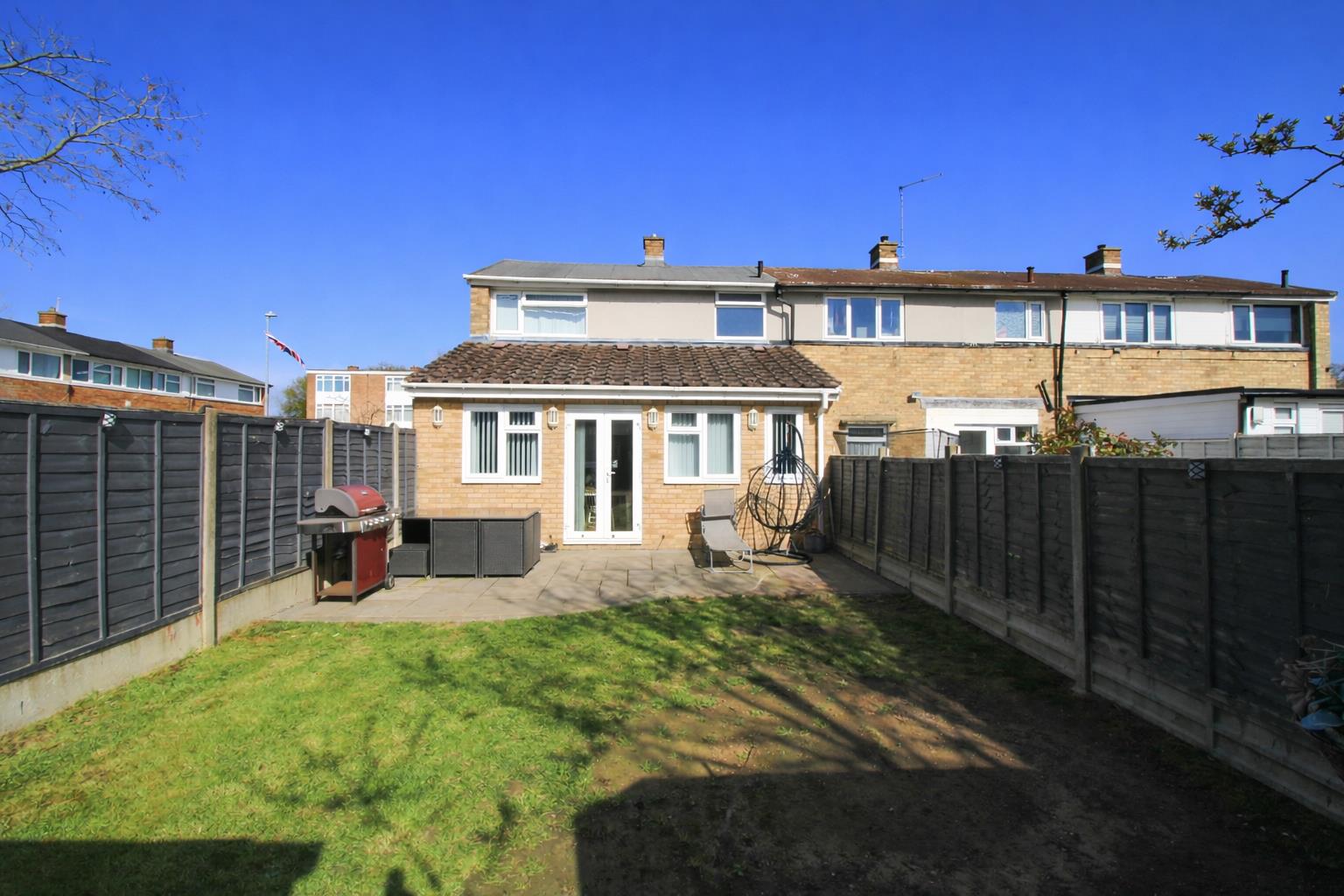 An extended two bedroom end of terrace house currently being used as a two/three bedroom. The property comprises an entrance porch with storage cupboards leading to a living room, kitchen with a range of fitted wall & base level units with work-surface areas, dining room, ground floor WC, landing, two bedrooms with the main room currently split into two and a family bathroom with a white three piece-suite with separate shower cubicle. Outside the westerly facing rear garden is mostly laid to lawn with a patio area and rear access. Pittmans Field is a popular area located between the Town Centre and The Stow with local shops and schools nearby.