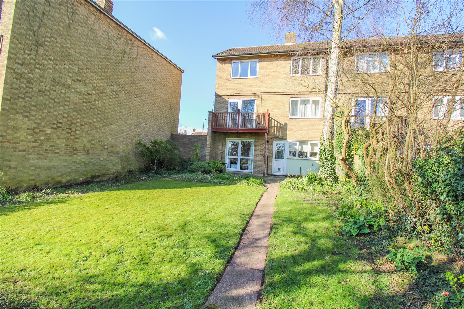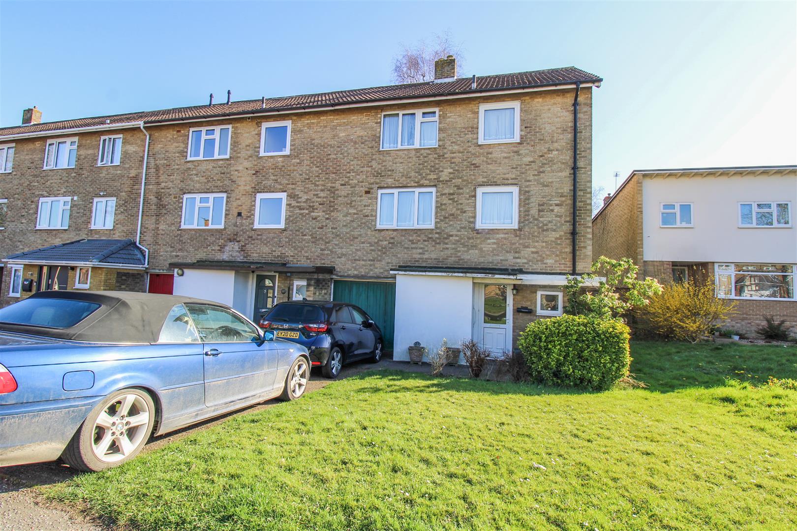 Offered CHAIN FREE is this four double bedroom end terrace townhouse with a garage and driveway. The property comprises a large entrance hallway leading to a dining room, kitchen with a range of fitted wall and base units, cloakroom/WC and access to the garage. On the first floor is a large lounge with a balcony overlooking the garden and a double bedroom, whilst on the top floor are three further double bedrooms and a family bathroom with a three piece suite. The large rear garden is mainly laid to lawn with a patio area and rear access. Home Close is located just a short walk from Harlow Town Centre, local schools and open fields.