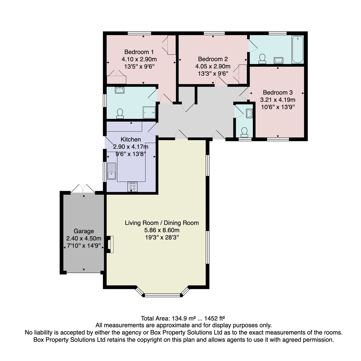 This superb bungalow provides well-planned accommodation including a large open-plan living and dining room, a well-appointed modern kitchen, three double bedrooms, two ensuite bathrooms and a guest WC. Externally, the property enjoys a generous plot with landscaped gardens, ample off-road parking and a garage.