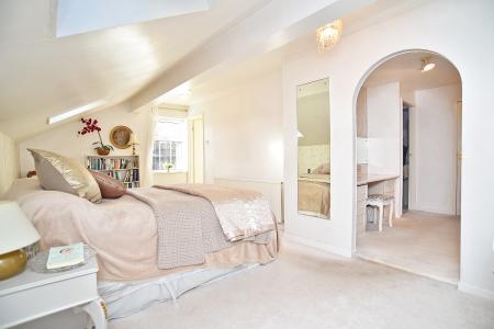 Completing the ground floor are three bedrooms and a house bathroom, with one of the bedrooms currently utilised as a home office, offering excellent flexibility for a variety of living arrangements. To the first floor is an impressive large bedroom suite, complete with its own bathroom and dressing room, providing a private and versatile principal living space.